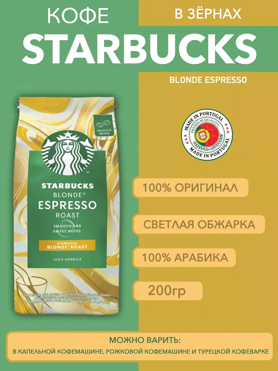 Каждая упаковка содержит 200 граммов тщательно отобранных и обжаренных зерен, которые создают идеальное сочетание аромата, кислотности, плотности кофе и вкуса. Обладая мягким и утонченным вкусом, кофе в зернах Starbucks Espresso Blonde Roast станет идеальным спутником в любое время дня.