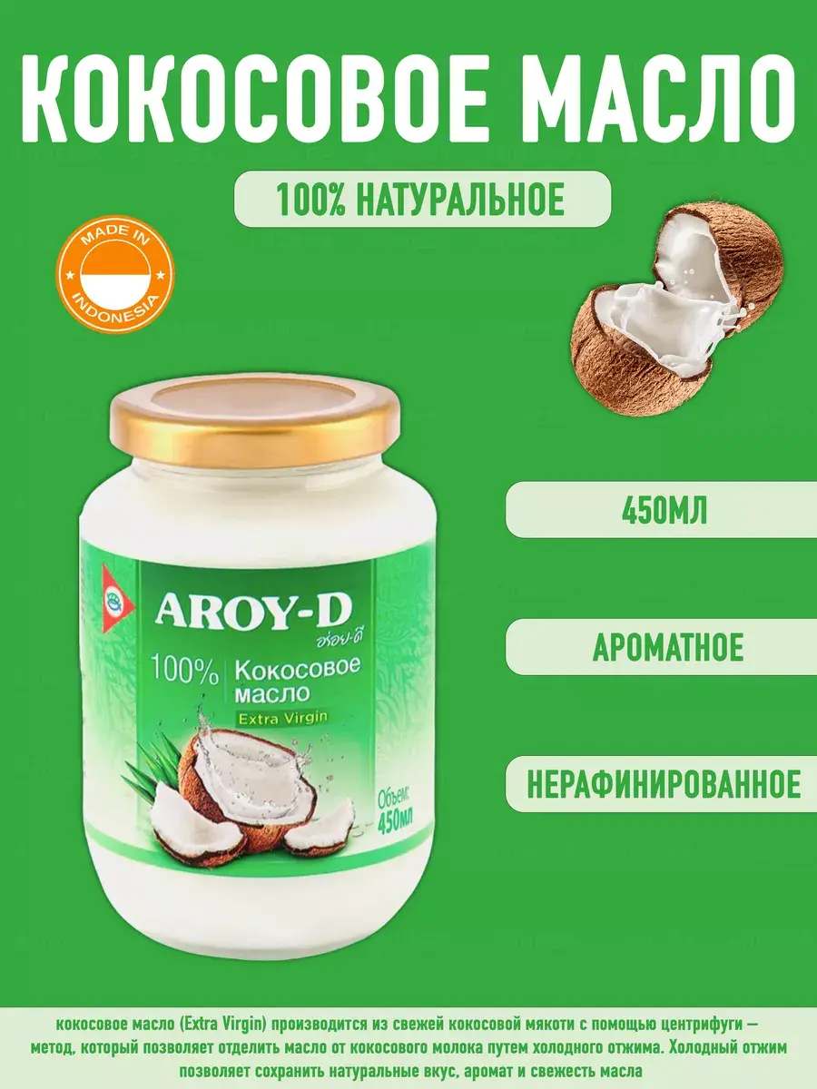 Кокосовое масло Extra Virgin AROY-D - отличная альтернатива сливочному или растительному маслу. Великолепное дополнение к Вашим любимым напиткам и десертам. Это масло можно использовать не только на кухне, оно также является отличным косметическим средством! Подходит для снятия макияжа, в качестве средства для ухода за волосами или увлажняющего средства для кожи.
