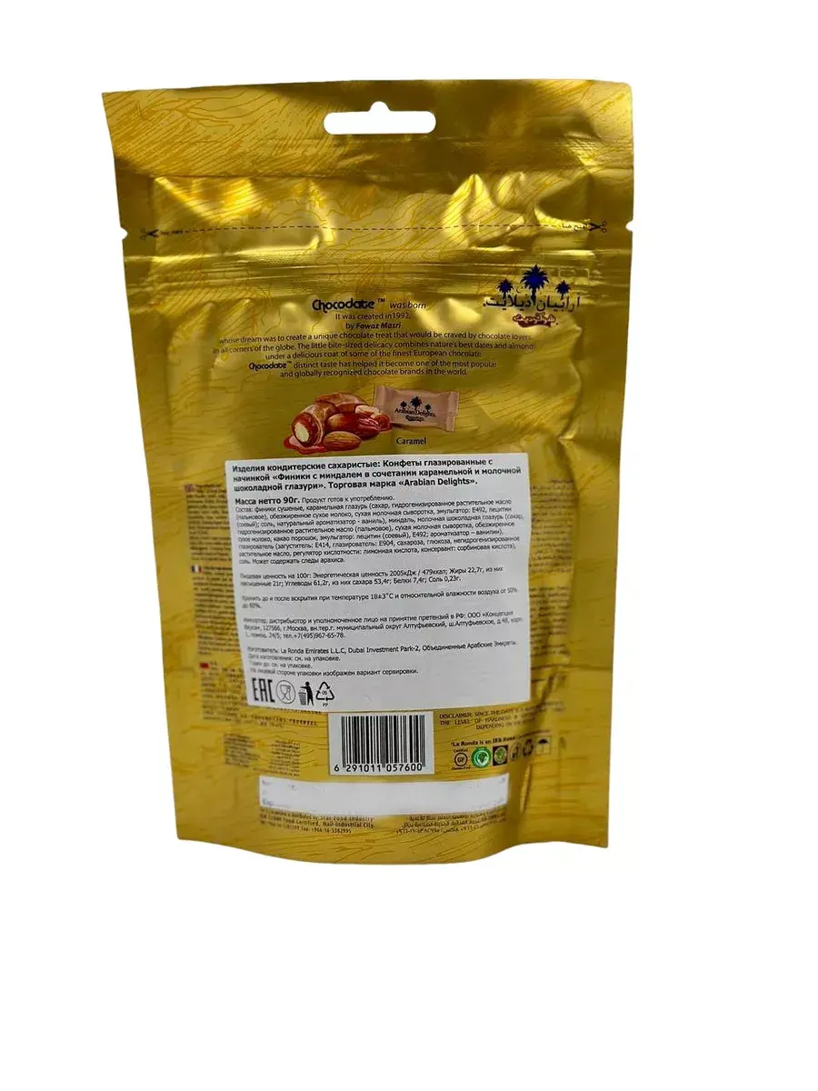 Попробуйте нежные финики из Саудовской Аравии с цельным ядром калифорнийского миндаля, покрытые белым, темным или молочным шоколадом с карамелью и низким содержанием сахара. Конфеты не содержат глютен и продукты ГМО. Каждая конфета изготавливается вручную, чтобы сохранить свежесть и неповторимый вкус. Богатые клетчаткой и витаминами, наши конфеты станут отличным источником энергии и хорошего настроения. Наслаждайтесь вкусом экзотических фруктов и полезных ингредиентов в каждой упаковке Chocodate!