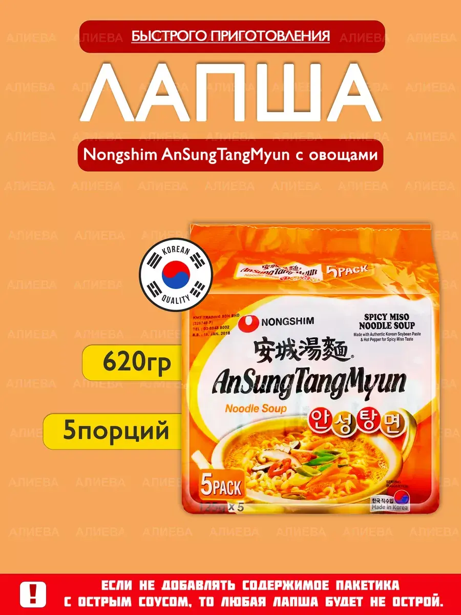 1 упаковка - 5 пачек корейской лапши Nongshim Ansungtangmyun( по 125гр.)