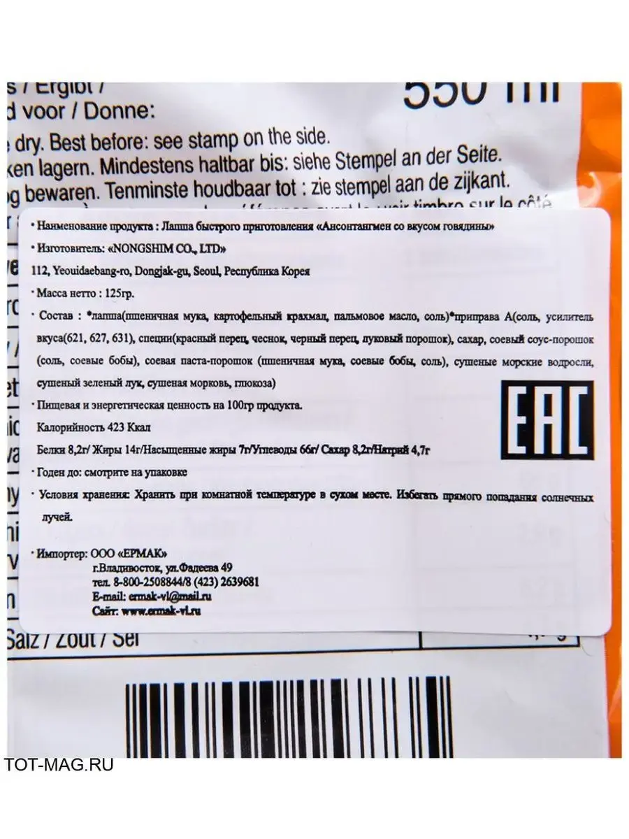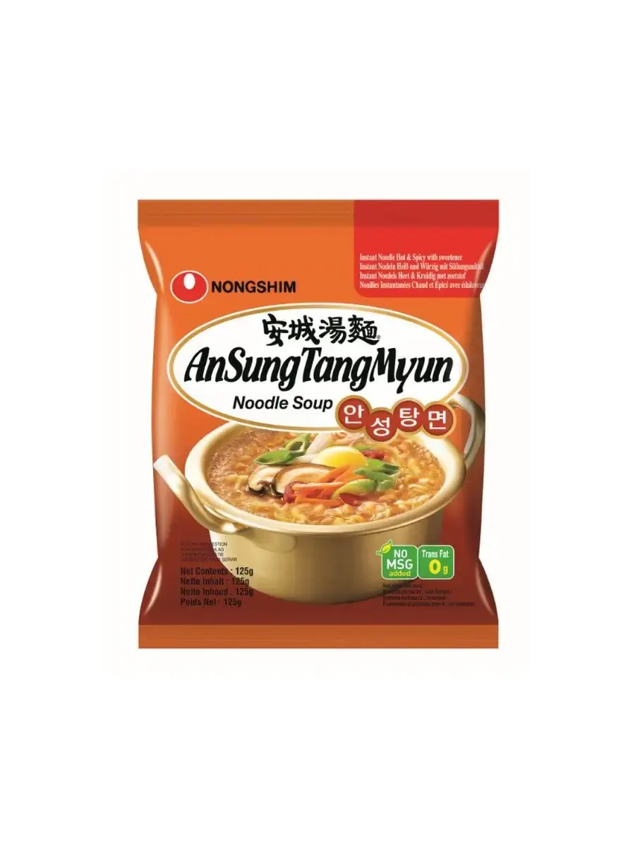 Насыщенный вкус и богатство полезных ингредиентов - вот что предлагает лапша быстрого приготовления AnsungTangMyun от Nongshim! Это уникальное блюдо, приготовленное из тонкой, эластичной и гладкой пшенично-рисовой лапши, придаст Вам силы и энергию на весь день.