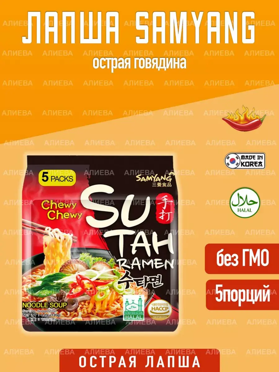 Жгучее корейское блюдо с ярким вкусом. Хорошо утоляет голод и поднимает настроение. Острая лапша Сута Рамен отлично усваивается, способствует укреплению иммунитета и позволяет быстро восполнить нехватку энергии.