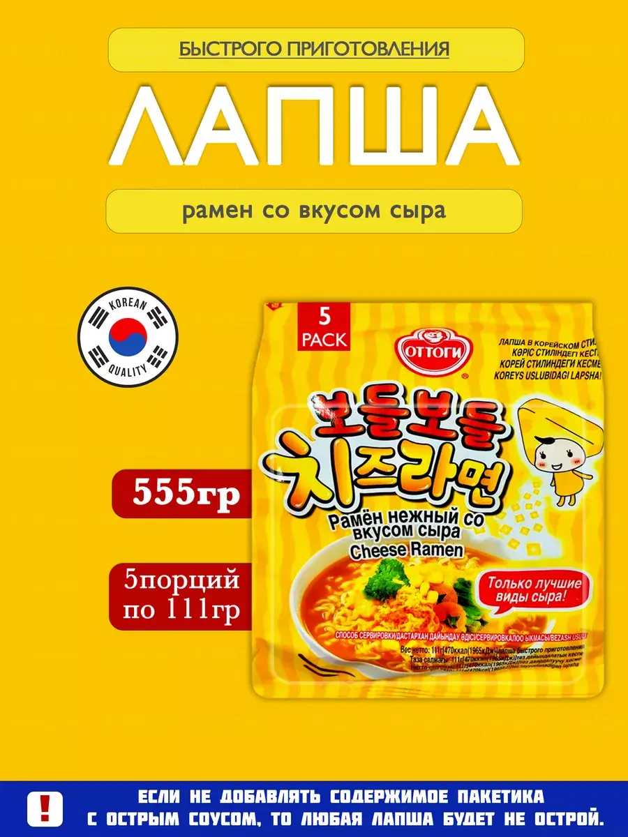 Лапша быстрого приготовления Нежный Рамен со вкусом сыра от торговой марки Ottogi подарит восхитительное ощущение сытости позволит восстановить силы. Такой горячий обед позволит сохранить высокую работоспособность и обеспечит прекрасное настроение. Продукт имеет отличный состав и изготавливается в Корее