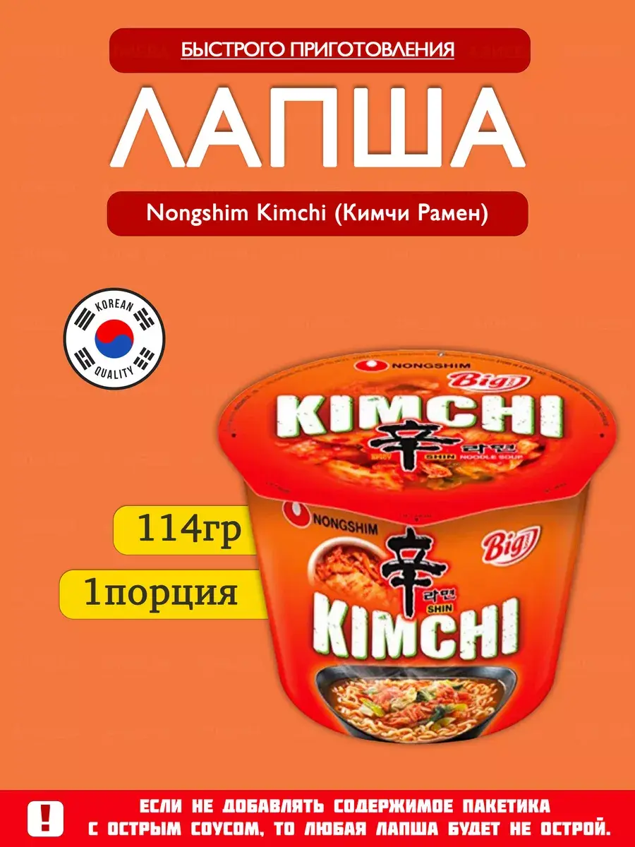 Хотите попробовать нечто новое и удивительно вкусное? Рекомендуем попробовать быстроразваривающуюся лапшу Nongshim Kimchi! Это неповторимое сочетание вкусной кислой лапши и ароматного корейского кимчи - создает невероятно насыщенный вкус, который не оставит вас равнодушным.