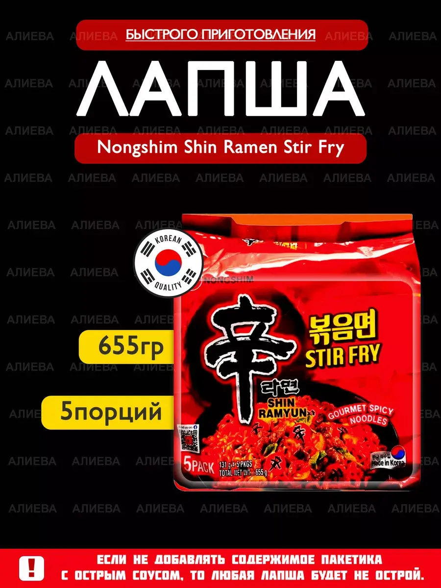 Лапша быстрого приготовления Shin Ramyun Stir Fry от торговой марки Nongshim обладает классическим острым вкусом, который горячо любим поклонниками корейских блюд. Ее необходимо варить в кипящей воде всего лишь в течение нескольких минут, что существенно экономит время и позволяет насладиться горячим обедом, не затрачивая лишних сил. Лапша «Шин Рамён» пользуется популярностью во всём мире и известна своим высоким качеством.