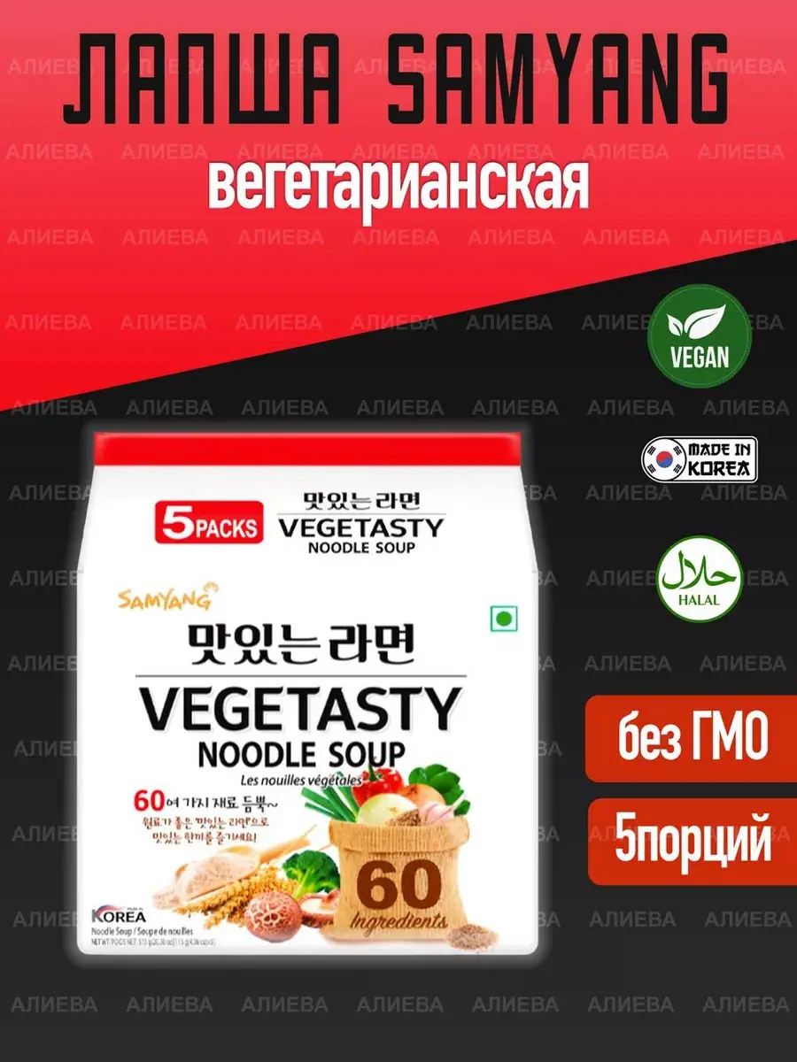 Вкусная вегетарианская лапша. Изготавливается из качественных ингредиентов. Суп лапша быстрого приготовления с овощами Vegetasty Noodle Soup Samyang понравится любителям корейских блюд и позволит как следует подкрепиться в условиях нехватки времени.