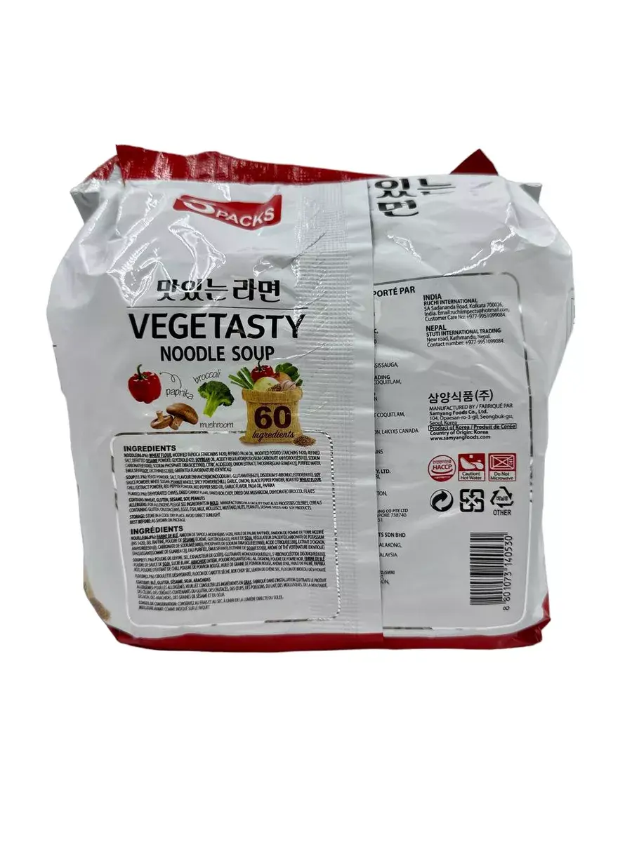 Суп-лапша быстрого приготовления с овощами Vegetasty Noodle Soup от торговой марки Samyang имеет необычайно насыщенный вкус. Это отличное решение для тех, кто хочет как следует подкрепиться в течение дня. Для изготовления этого продукта используется несколько десятков ингредиентов растительного происхождения, сама лапша качественная, эластичная, легко пропитывается бульоном.
