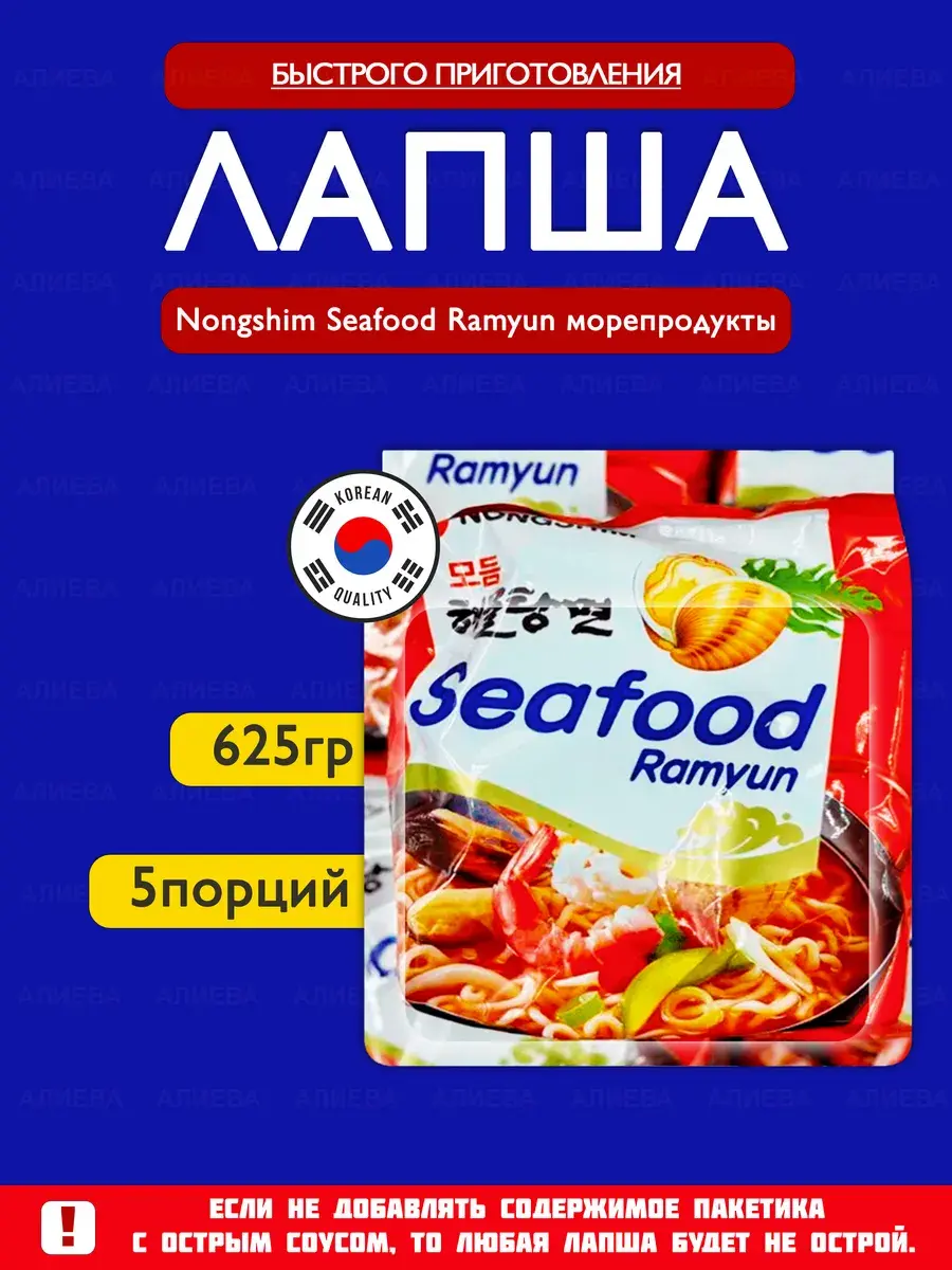 Познакомьтесь с лапшой быстрого приготовления Nongshim Seafood Ramyun – настоящим кулинарным сокровищем из Кореи! В каждой упаковке вас ждут 5 порций по 125 г, каждая из которых – это идеальный баланс насыщенного вкуса морепродуктов и тонкого аромата азиатских специй. Лапша изготавливается из высококачественной пшеничной муки, а в составе вы найдете сушеные овощи и специальную приправу с ярким морским акцентом. Приготовление занимает всего 5 минут: просто добавьте кипяток, и вы получите сытное, ароматное блюдо, которое согреет и подарит удовольствие в любой момент.