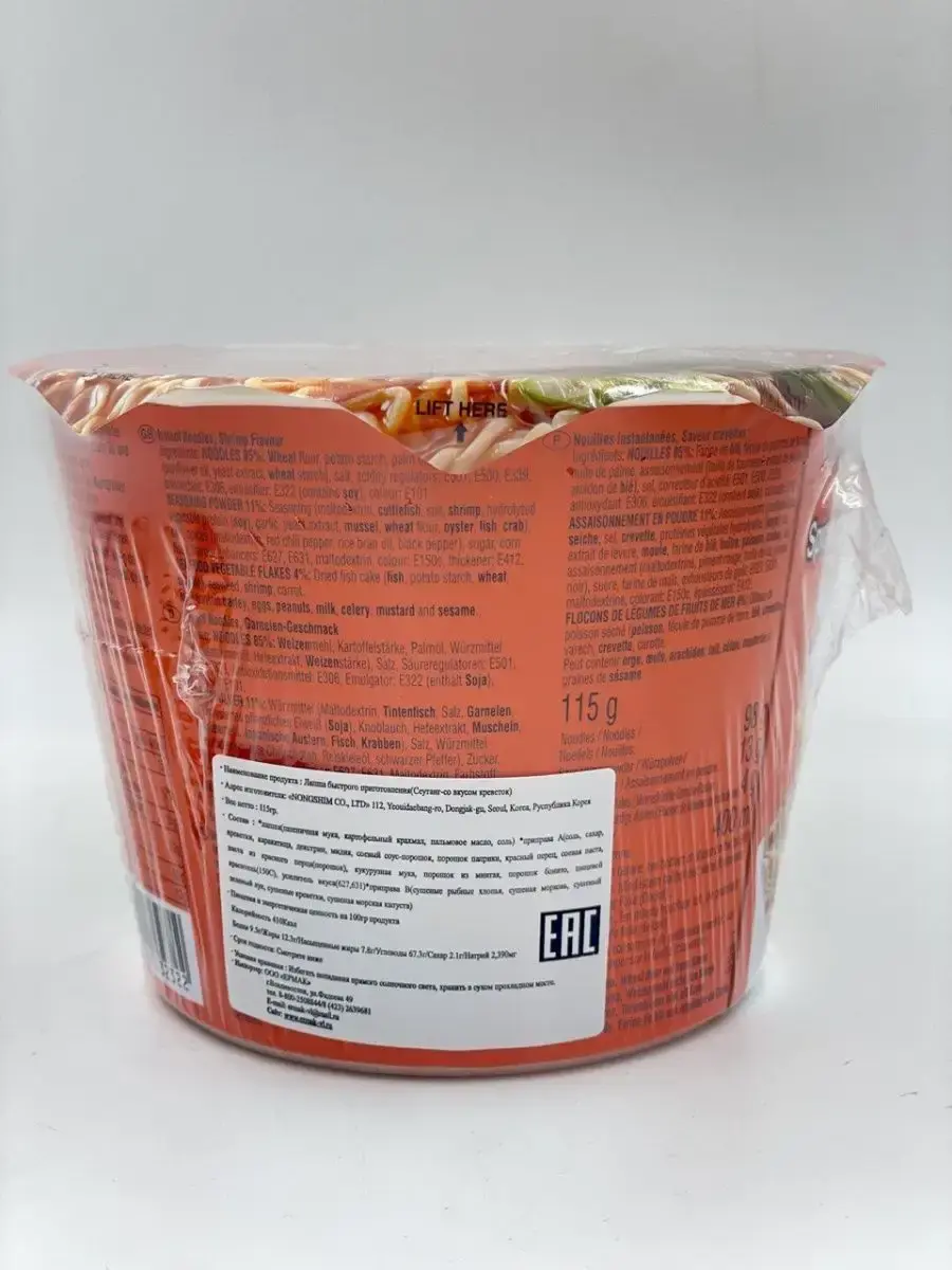 Большая порция Nongshim Shrimp Big Bowl идеально подходит для тех, кто хочет быстро и легко приготовить себе вкусный и сытный обед. Будь то обед в офисе или быстрый ужин дома, Nongshim Shrimp Big Bowl легко станет вашим новым любимым блюдом.