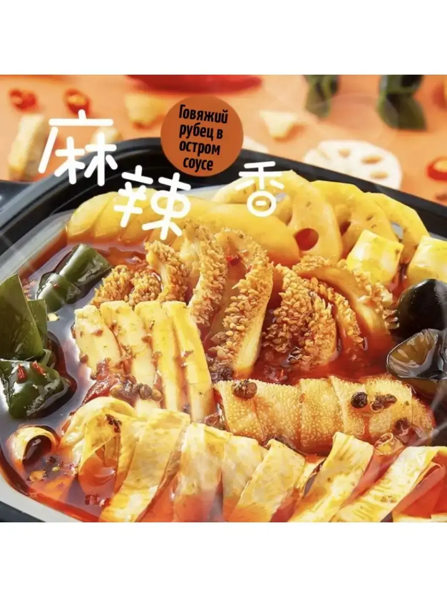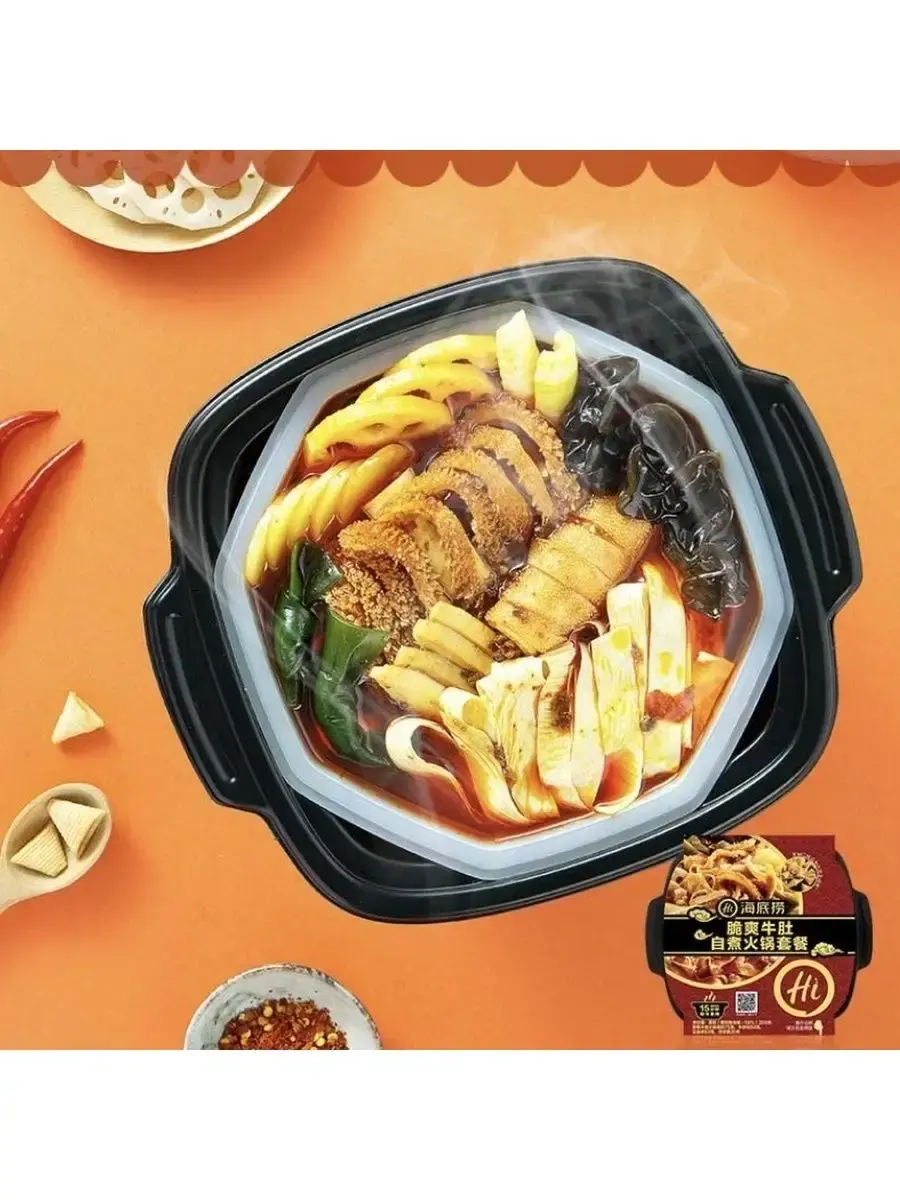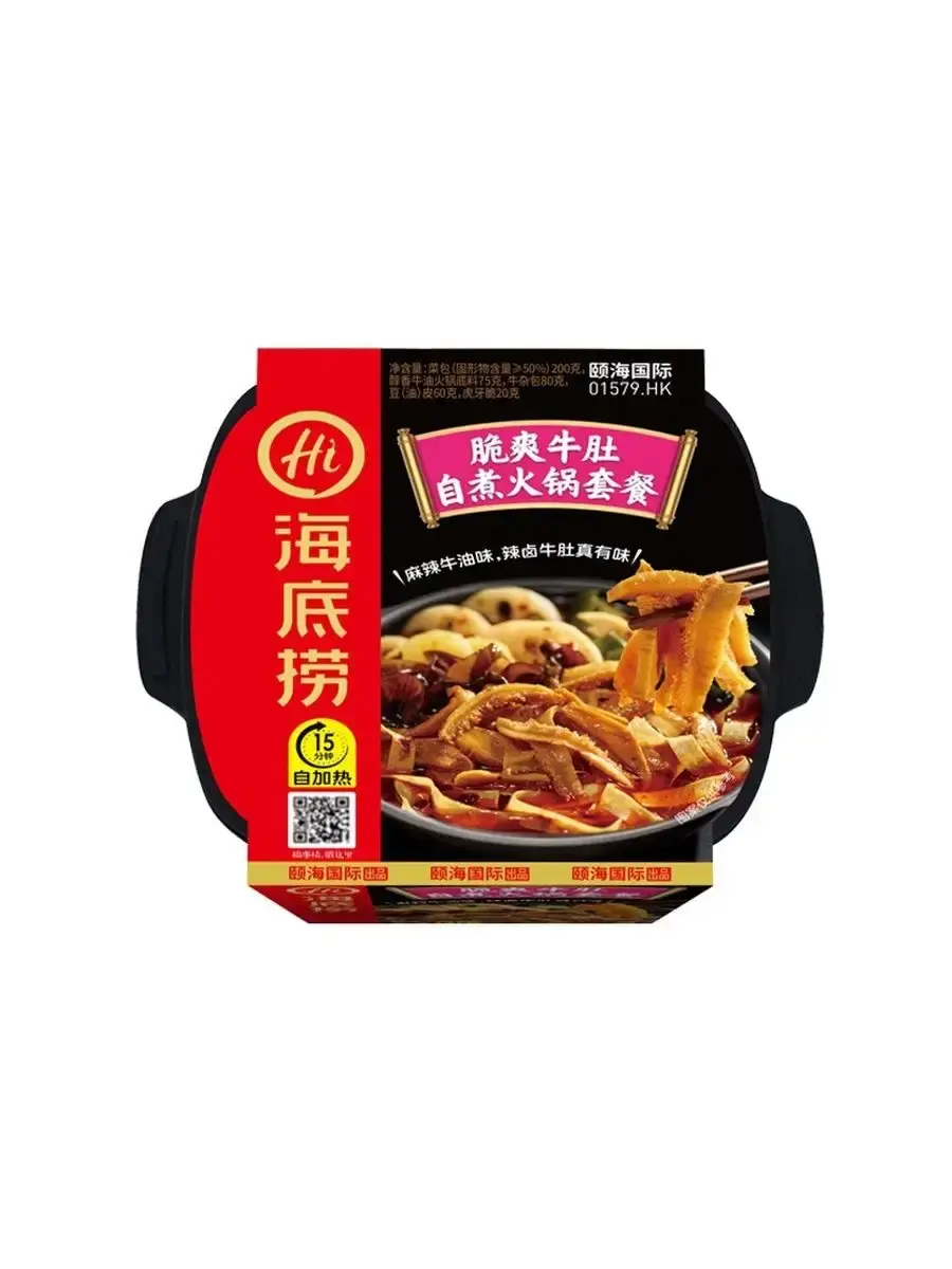 Haidilao Hot Pot Лапша саморазогревающаяся с говяжьим рубцомHaidilao - это одна из самых известных сетей ресторанов в Китае, предлагающая своим гостям не самое обычное для России , но очень традиционное для Азии блюдо: Hot pot - "горячий котелок" или "самовар".Его суть в том, что в середине стола размещается кастрюля с одним или несколькими видами бульона, в который гости самостоятельно кладут различные ингредиенты, представленные в меню. Выбор таких ингредиентов, как правило, огромен: мясо и рыба в самых различных вариациях, крабовые палочки, мидии, морской гребешок, корень лотоса, картофель, батат, ямс, пакчой, салат, чеснок, лук, морковь, грибы, соевые бобы, креветки, редька, водоросли, тофу, спаржа, лапша, фасоль, кукуруза, арахис... список можно продолжать бесконечно.Haidilao имеет рестораны не только в Китае (включая Макао, Гонконг и Тайвань), но и в США, Сингапуре, Японии, Корее, Австралии, Малайзии, Великобритании, Канаде, Тайланде, Индонезии, Вьетнаме.Для более широкого распространения на рынке был придуман специальный саморазогревающийся Hot Pot, включающий в себя все необходимые ингредиенты, а также удобный способ приготовления, при котором даже не потребуется кипяток! Такой котелок очень удобно брать с собой на работу, в поездку, на пикник или рыбалку. Порция увеличенного размера, поэтому даже получится поделиться. Представлено несколько вариантов исполнения. Данный вариант - с говядиной и бульоном на томатной основе.Состав: картофель, рубец говяжий, тофу, корень лотоса, водоросли (ламинария), фасолевая паста, бамбук, лук, чеснок, древесные грибы, растительное масло, вода, соль, перец чили, сычуаньский перец, соевый соус, имбирь, пшеничная мука, лимонный сок, крахмал, мальтоза, сахар, мальтодекстрин, приправа.