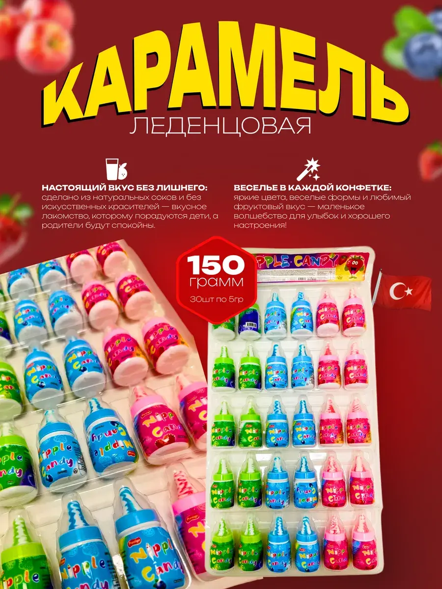 Оригинальная форма в виде детского аксессуара делает эти леденцы не просто лакомством, а забавным напоминанием о беззаботном времени. Такой нестандартный подход к оформлению сладостей понравится как взрослым, ценящим креативные решения, так и детям, которые оценят игривый дизайн. Удобная упаковка позволяет легко брать леденцы с собой, а необычная форма станет поводом для улыбки и приятным подарком для тех, кто любит сладости с характером.