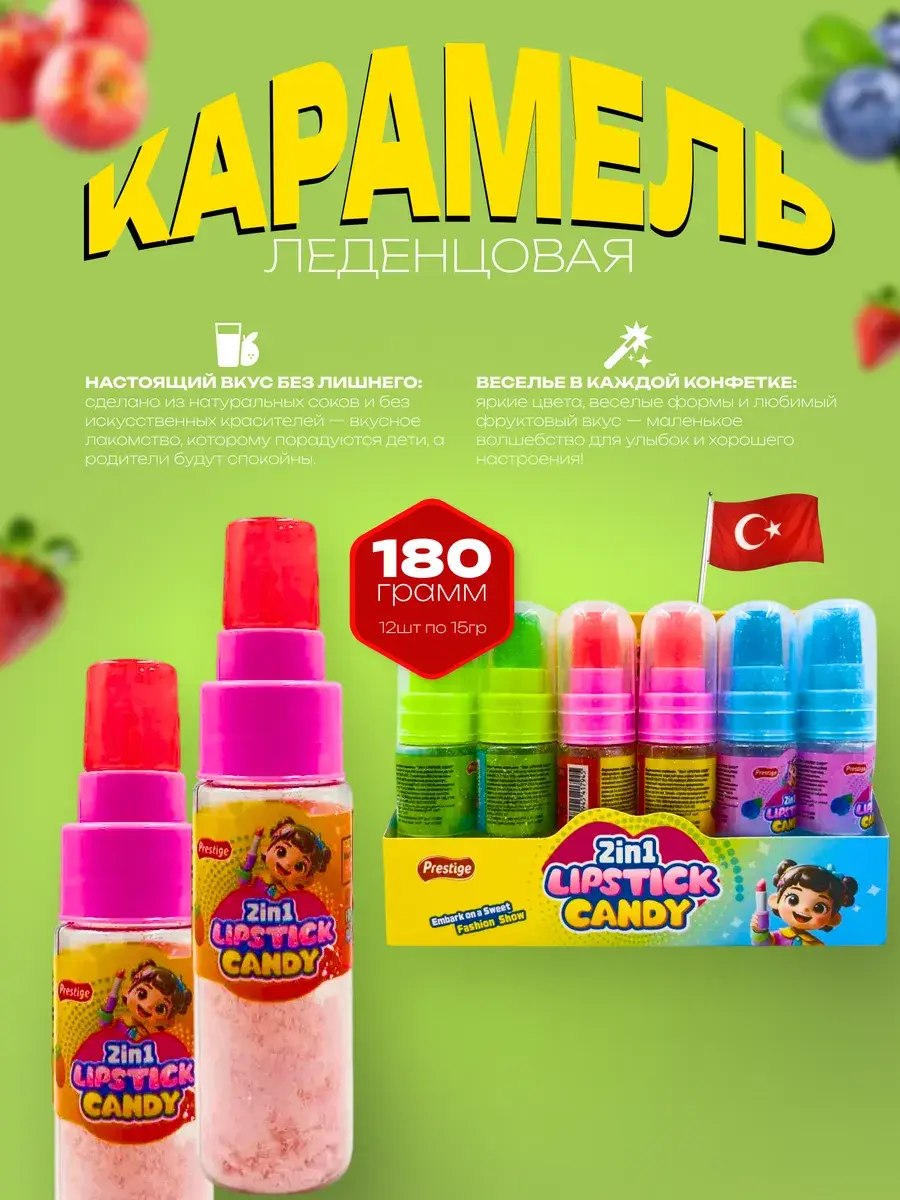Турецкий производитель Prestige представляет необычные леденцы в стильном оформлении, напоминающем миниатюрную помаду. Каждая упаковка содержит 30 изящных карамелек весом по 6 грамм с нежным вкусом спелой клубники, сочного яблока и ароматной черники, покрытых тонким слоем сахарной пудры для особенной нежности. Оригинальная форма в виде косметического аксессуара делает эти леденцы не просто сладостью, а модным акцентом, который можно носить с собой как стильный аксессуар. Идеальный вариант для тех, кто ценит не только вкус, но и эстетику в повседневных мелочах. Эти утонченные леденцы станут приятным сюрпризом для себя или изящным подарком для близких.
