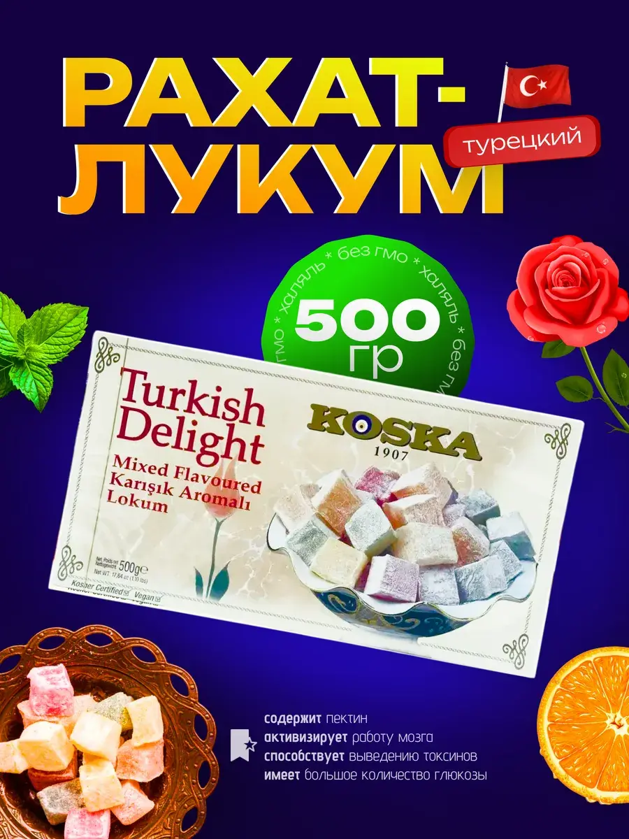 В данной карточке ,для Вашего удобства, представлены несколько видов натурального турецкого лукума.Сочетание нежного, тающего во рту турецкого рахат-лукума с разнообразными фруктовыми соками или орешками (фундук или фисташки) понравится всем любителям восточных десертов и сладостей.Восточные сладости от крупнейшего и известнейшего производителя Турции марки Koska порадуют Вас своим натуральным составом, приверженностью традициям и ингредиентами высочайшего качества.В их составе нет искусственных добавок и консервантов.