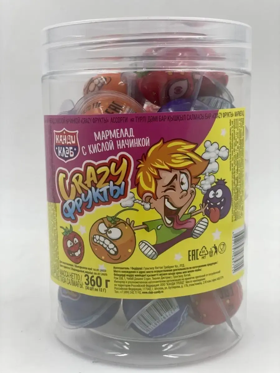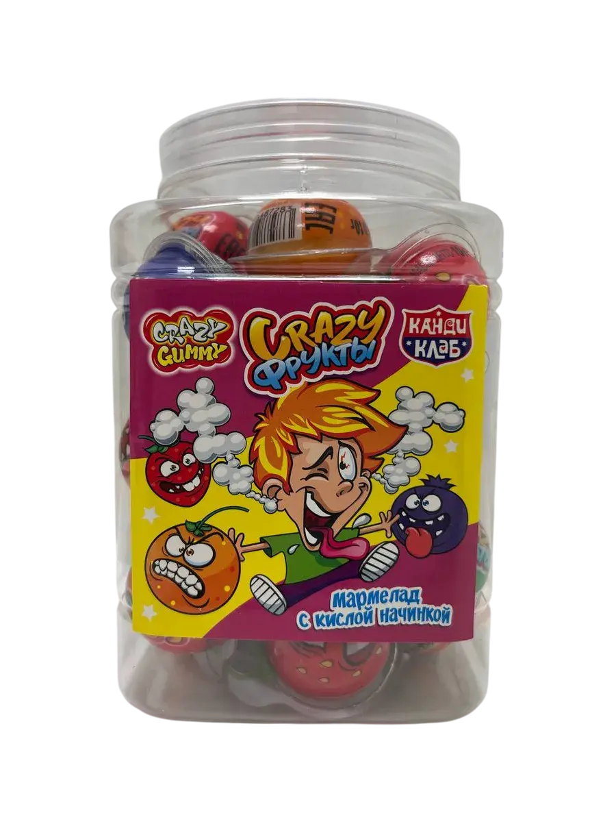Мармелад Crazy фрукты с кислой начинкой от компании Канди Клаб китайского производства давно радуют своими вкусами не только китайцев, но и весь мир. Не содержат жиров в своем составе. Вес одной банки 300г. Разноцветные фруктовые круглые конфеты со вкусом самых разных фруктов и неповторимым кислым послевкусием не оставят никого равнодушным!