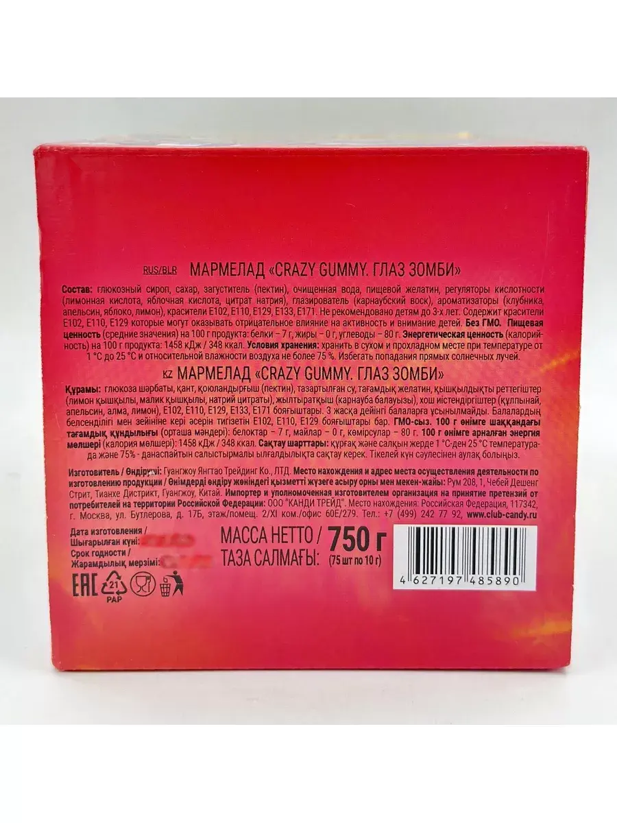 Внутри коробки вы найдете 75 мармеладных "глаз" в ярких красных и зеленых цветах, каждый весит по 10 граммов и упакован в индивидуальную упаковку. Это не просто мармелад, это настоящее произведение искусства в мире сладостей!
