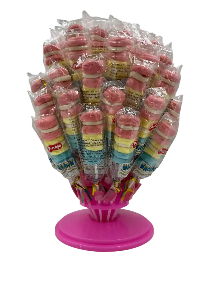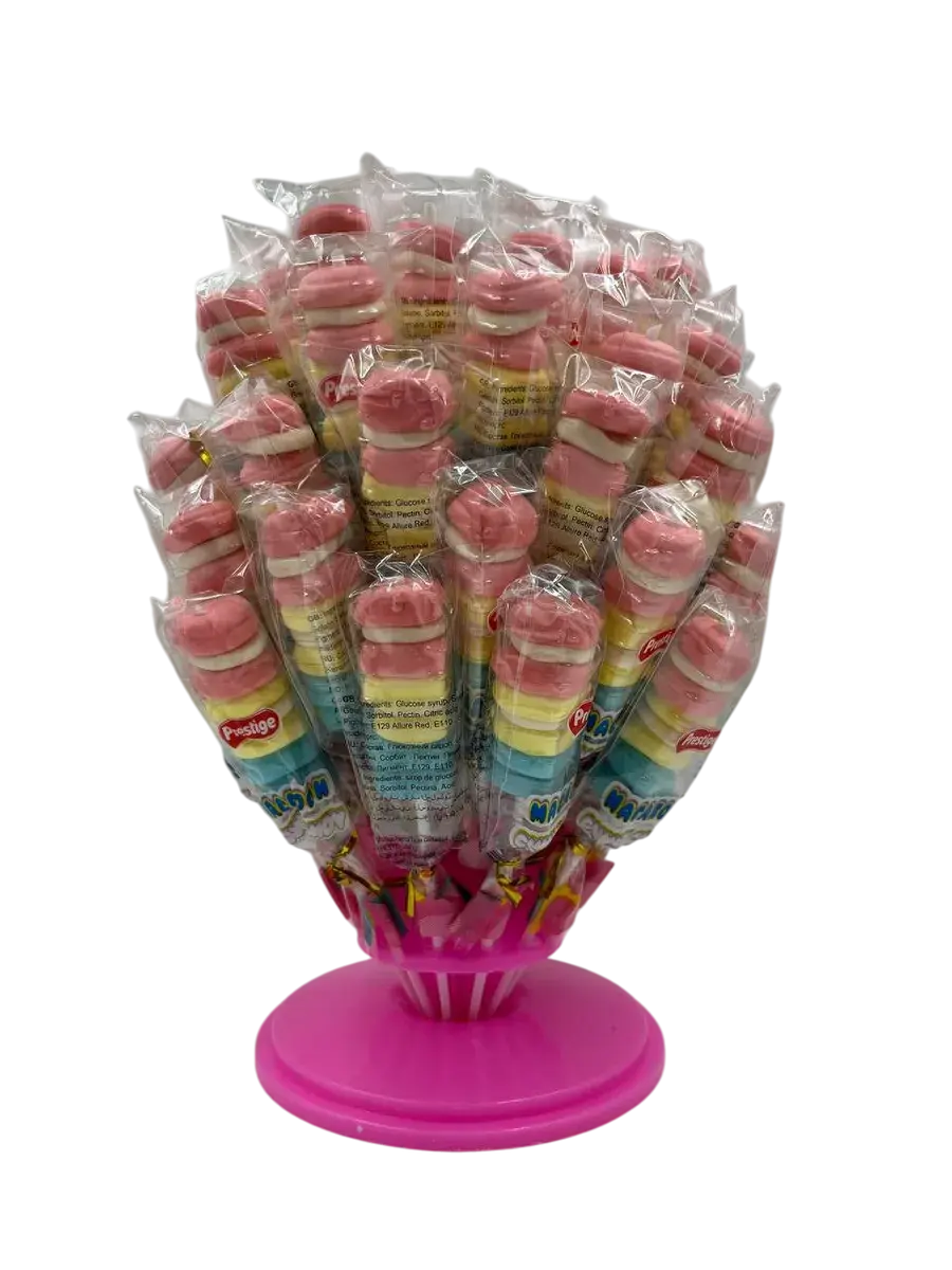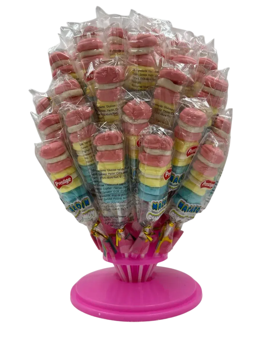 Жевательный мармелад на палочке в форме пирожного макаруна - это удивительное сочетание вкуса и креативности в мире сладостей. Эти уникальные сладкие угощения предлагают вам не только насыщенный фруктовый вкус, но и визуальное воссоздание формы популярного пирожного макаруна.