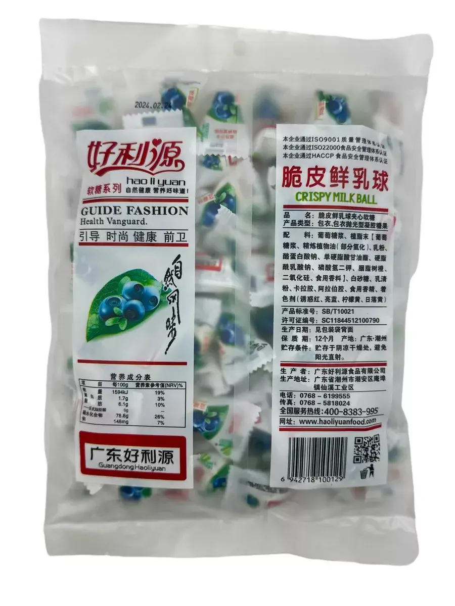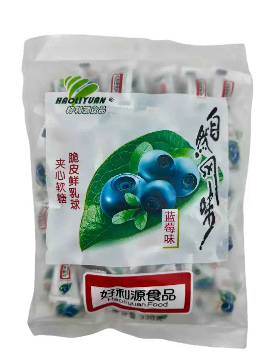 Молочно-фруктовые конфеты, мягкие нежные Haoliyuan Fresh Milky Balls с желейной начинкой со вкусом голубики . Молочно-фруктовые, нежные, не приторные, очень вкусные.