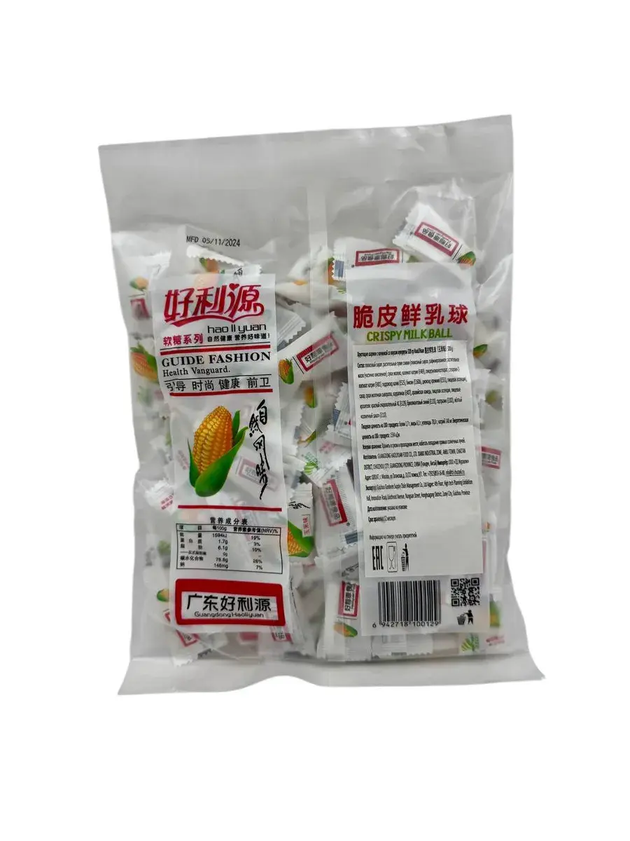 Молочно-кукурузные конфеты Haoliyuan Fresh Milky Balls — это невероятно нежное и вкусное лакомство, которое покорит ваше сердце с первой конфетки! Мягкая молочная оболочка сочетается с удивительной желейной начинкой со вкусом кукурузы, создавая неповторимую гармонию вкусов.