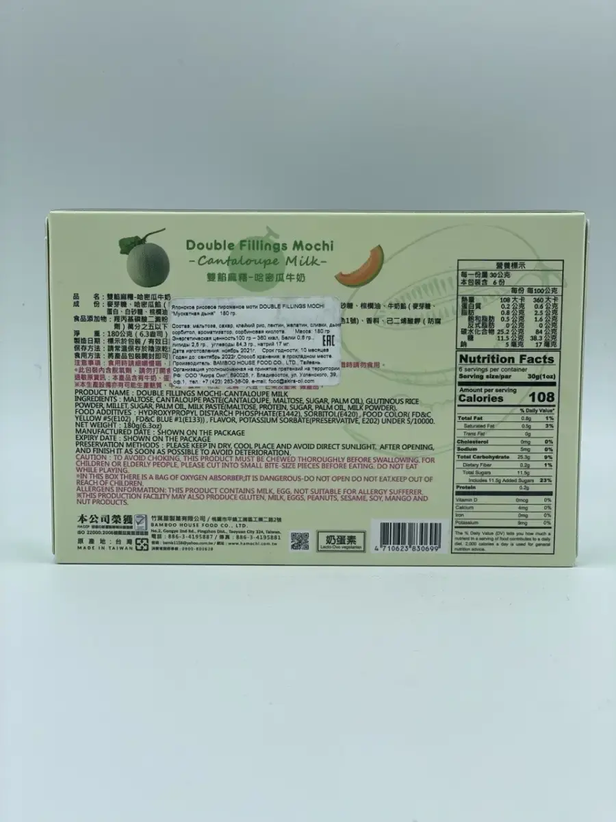 Мальтоза, паста из тайваньской дыни ( тайваньская дыня, мальтоза, сахар), клейкая рисовая мука),