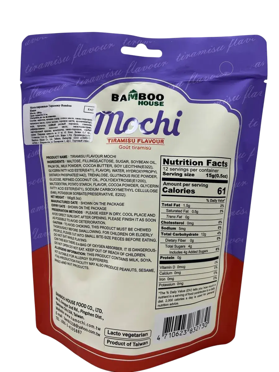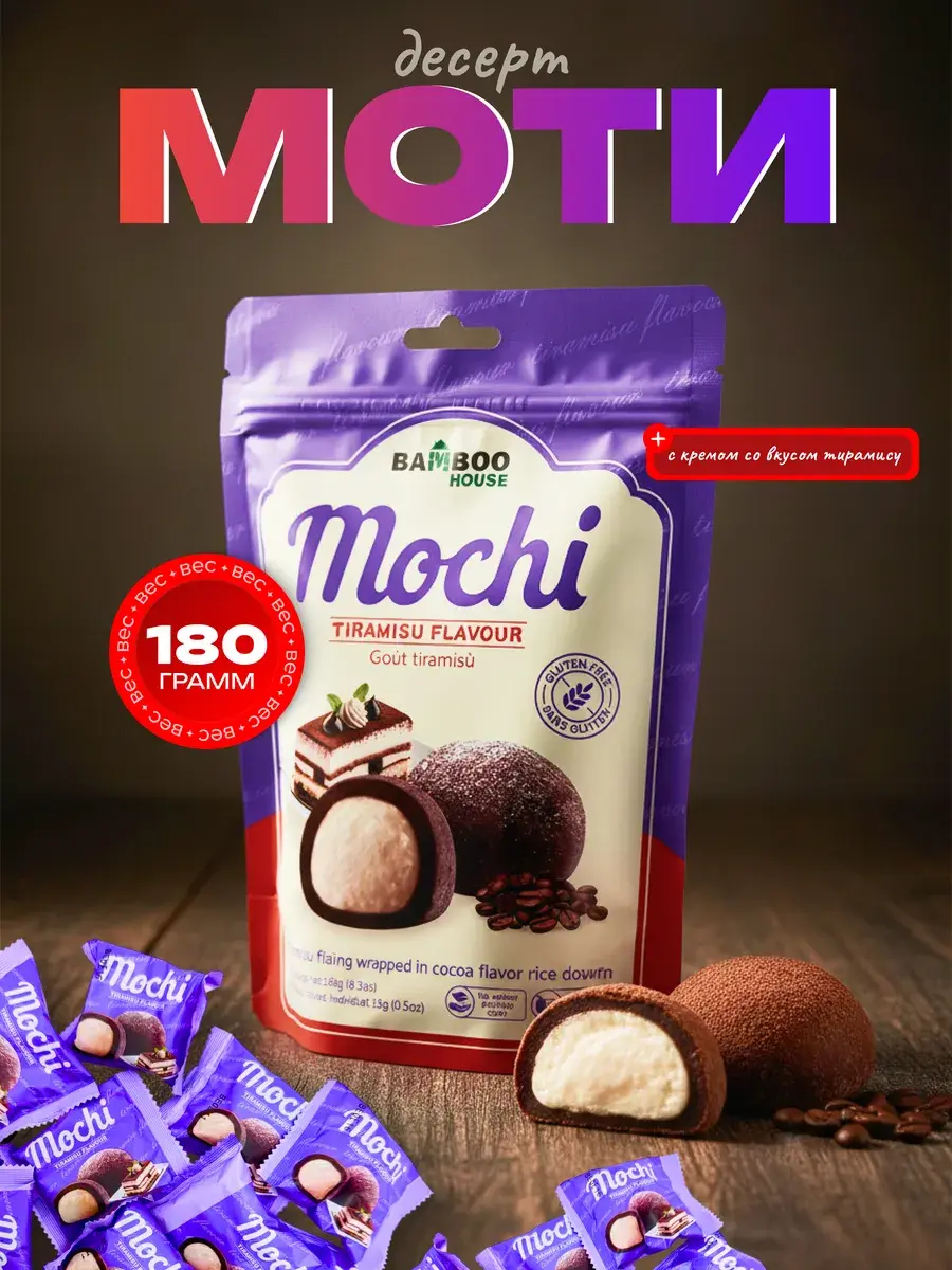 Погрузитесь в изысканную гармонию восточных и европейских десертных традиций с нежными моти с изысканным вкусом тирамису. Эти аутентичные японские пирожные, созданные по старинным рецептам, открывают новый взгляд на классический итальянский десерт. Под мягкой и пластичной оболочкой из особого клейкого риса скрывается утонченная начинка, в которой гармонично переплетаются кофейные ноты, нежный вкус сыра маскарпоне и деликатная сладость десертного крема. В каждой упаковке весом 180 грамм вас ждет 12 аккуратных пирожных, каждое из которых упаковано индивидуально. Индивидуальная упаковка весом 15 грамм не только сохраняет идеальную свежесть и нежную текстуру десерта, но и позволяет легко наслаждаться лакомством в любой момент, будь то неспешное чаепитие или легкий перекус в течение дня.