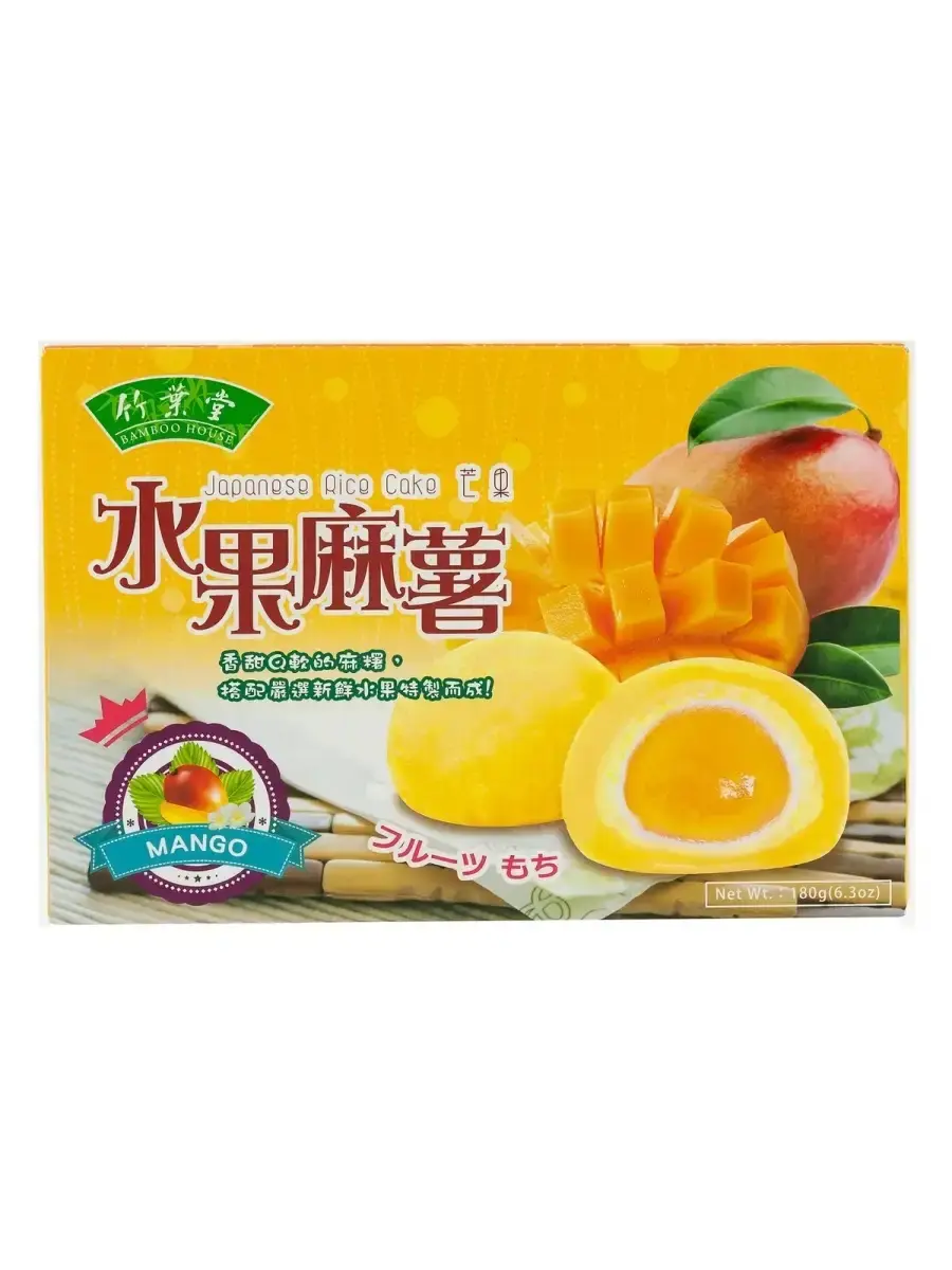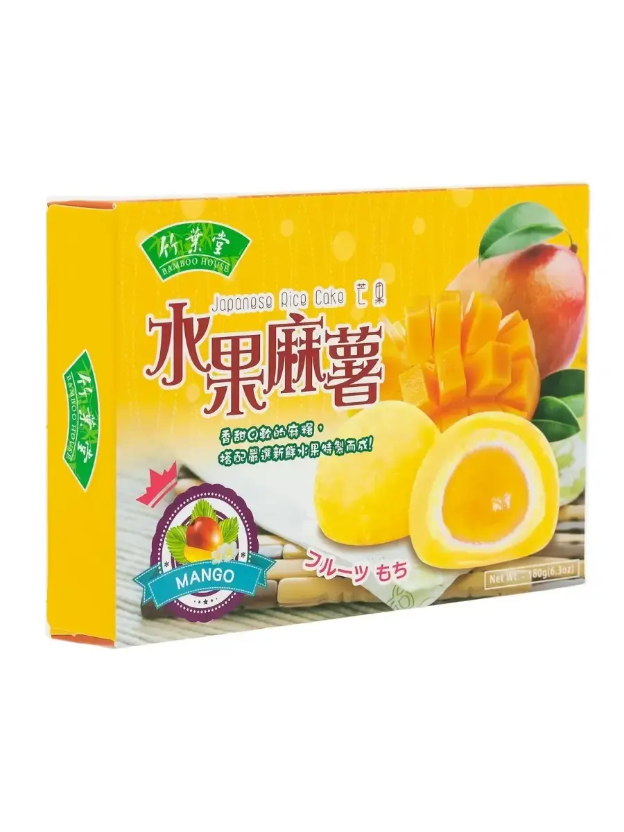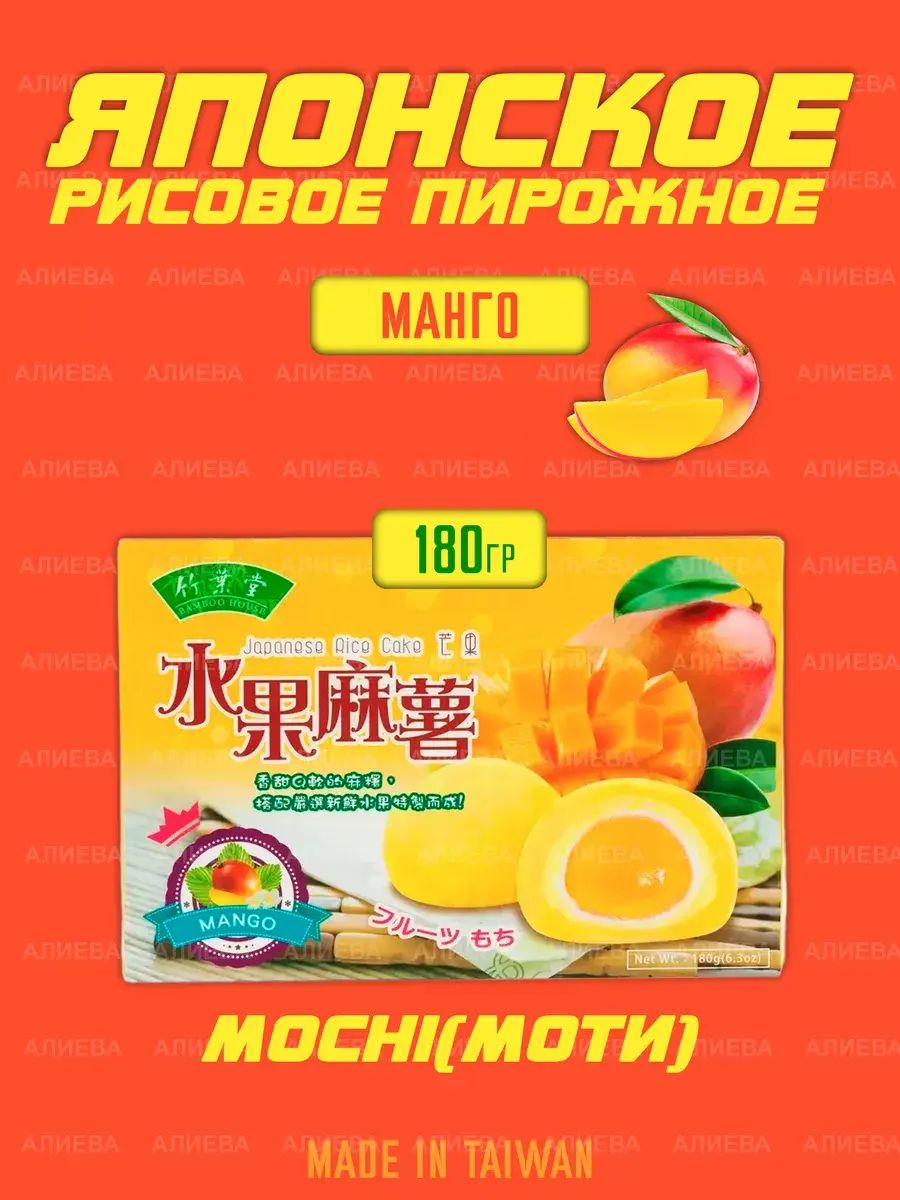 Десерт Моти - это шарики из рисового теста с начинкой внутри. Делается из истолчённого в пасту клейкого риса, который при долгом толчении и смачивании приобретает сладкий вкус. Моти - это традиционное японское лакомство, очень нежные рисовые пирожные, оригинальные и непривычные для нашего вкуса. Любимый всеми Моти очень распространен по всей Юго-Восточной Азии, фруктовый десерт для ценителей азиатской кухни.В процессе приготовления моти не выпекают, оставляя рисовую основу мягкой и нежной. В качестве сладких начинок в традиционных дайфукумоти используют различные фрукты или же фруктовые джемы. В данной карточке вы можете приобрести моти( mochi) с начинками : Манго, Черника, Клубника. Моти BAMBOO HOUSE производят в Тайване из высококачественных ингредиентов.