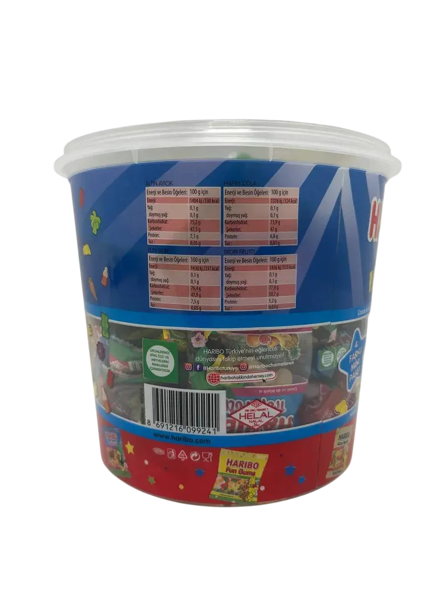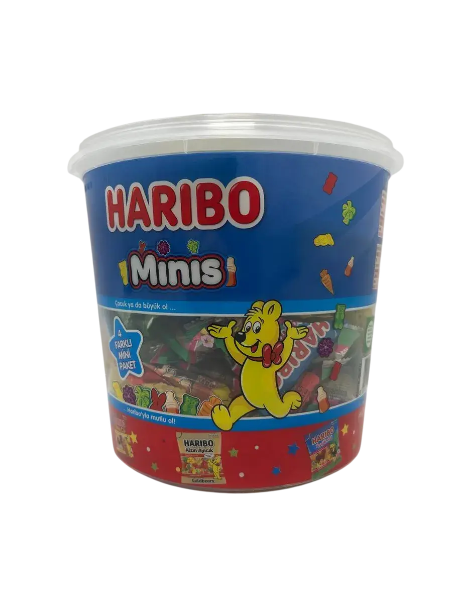 Haribo Minis — это восхитительный набор из 100 порционных мармеладок, каждая весом 10 грамм. Этот уникальный haribo мармелад набор объединяет в себе целый килограмм удовольствия! В одном ведерке мармелад 1 кг haribo собрал лучшие серии: тропические Haribo Tropifrutti, игристую Haribo Happy Cola, классических Haribo Golden Bears и веселые Haribo Fun Gums.