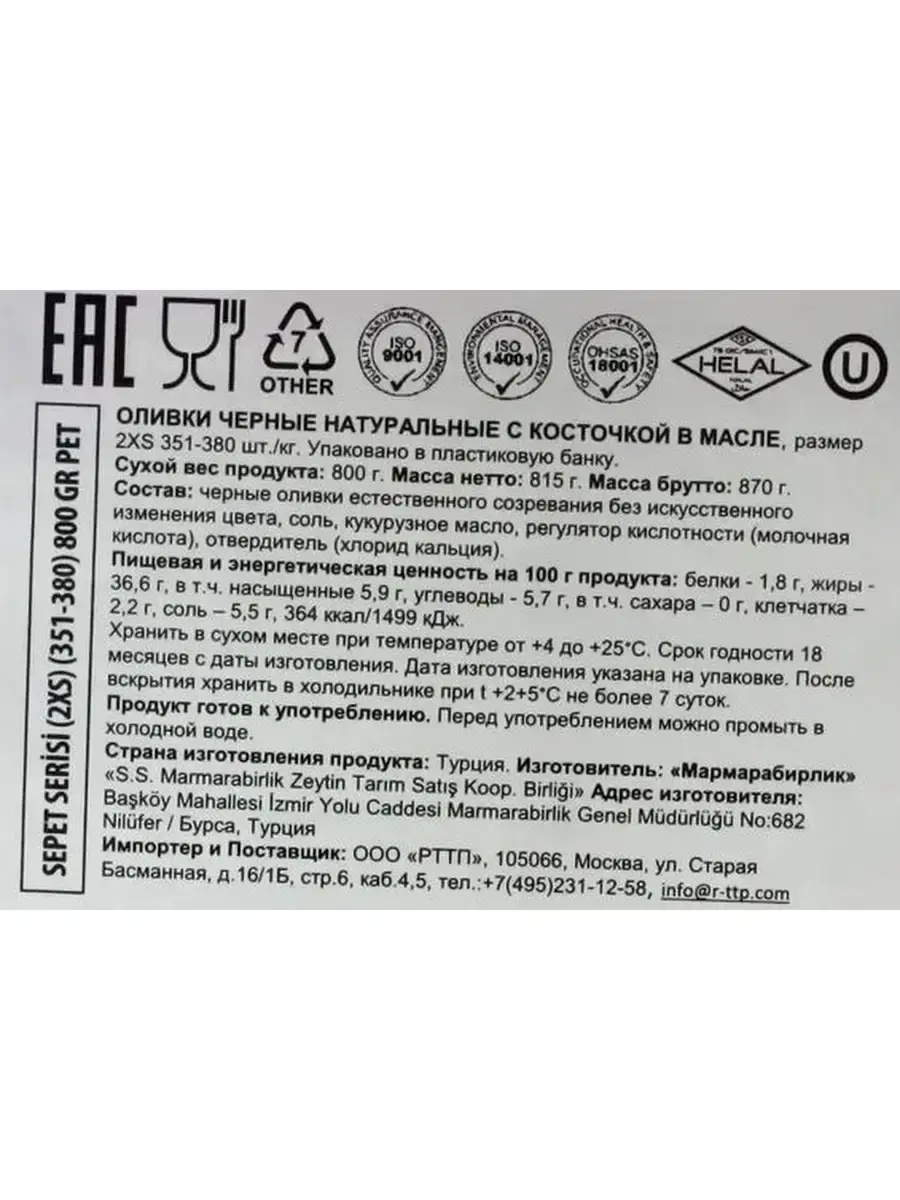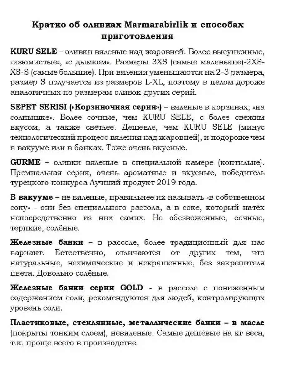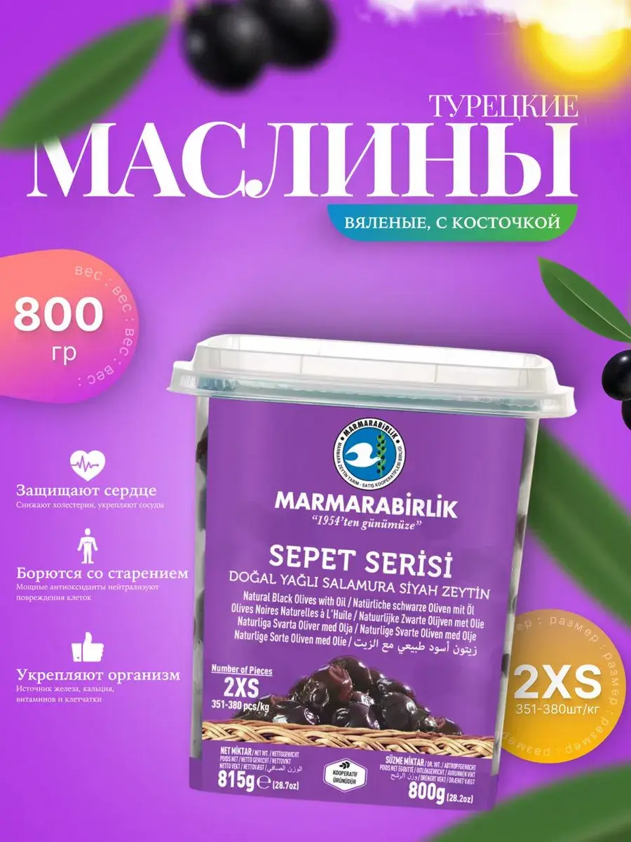 Вяленые оливки/маслины, которые выпускает турецкая компания MARMARABIRLIK, обладают восхитительными вкусовыми качествами и массой полезных свойств. В отличие от большинства продукции других торговых марок, эти оливки не подвергаются химической обработке, созревают непосредственно на ветках и вялятся естественным путем. Их выдерживают в морской соли с целью устранения характерной горечи. Правда, при этом пикантная горчинка все равно остается, ее дает самое полезное в оливках вещество под названием олеуропеин. Кошерный продукт положительно отражается на пищеварении, предотвращает старение тканей, развитие рака, патологий сердечнососудистой системы и повышение артериального давления. Натуральные максимально крупные готовые оливки с косточками очень вкусные и ароматные. Они поставляются в пластиковом контейнере, обеспечивающим их надежное хранение. Оливки используются для приготовления различных блюд и закусок, а также употребляются в качестве самостоятельного лакомства.
