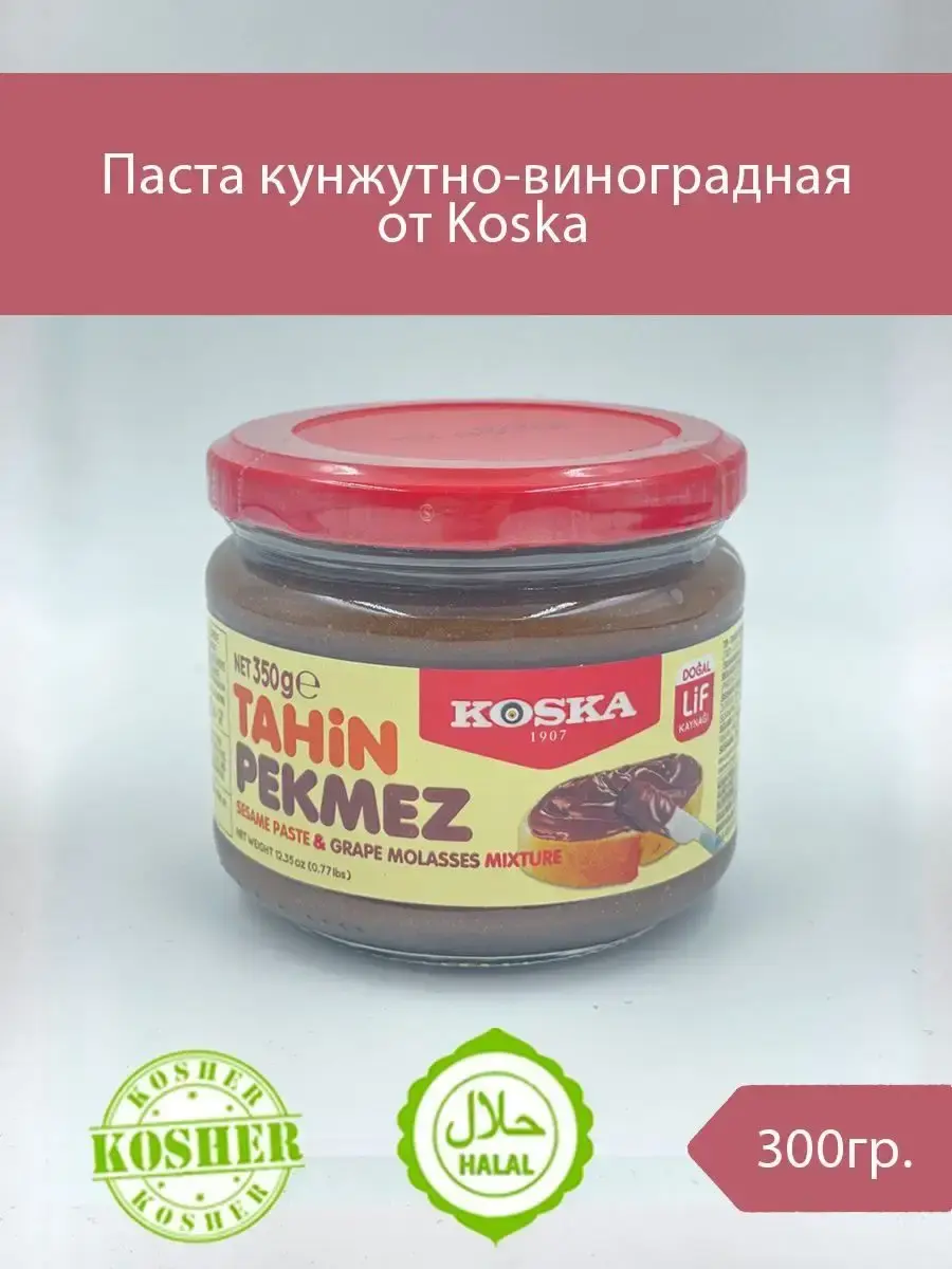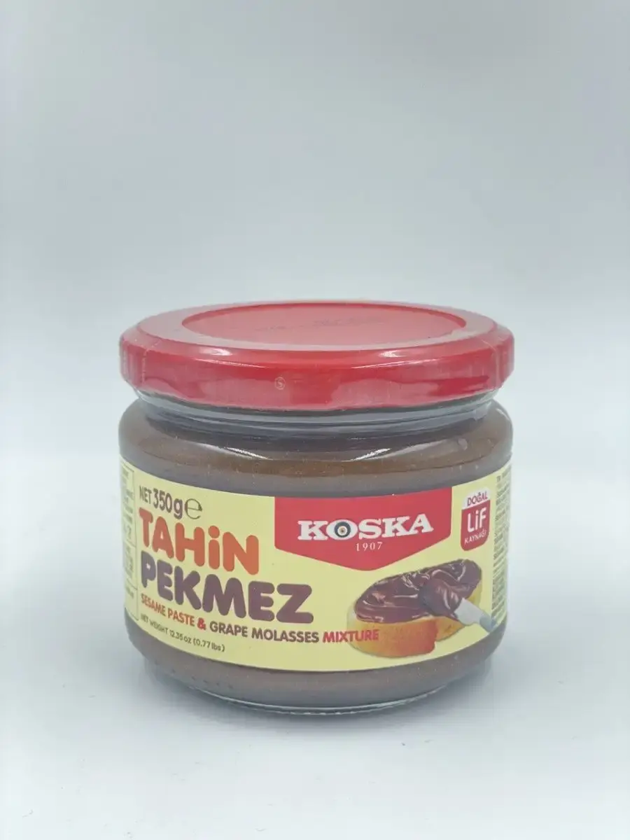 Питательная кунжутная паста из отборных семян кунжута и сладкий пекмез из плодов винограда от KOSKA - это классическое сочетание на Востоке. Благодаря высокой энергетической ценности подобный полезный десерт дарит надолго заряд энергии и придает сил, а также обогащает организм полезными микроэлементами и витаминами. Виноградный пекмез, загущенный сироп из плодов винограда без добавления сахара, известен своим благотворным воздействием на иммунитет и систему ЖКТ.