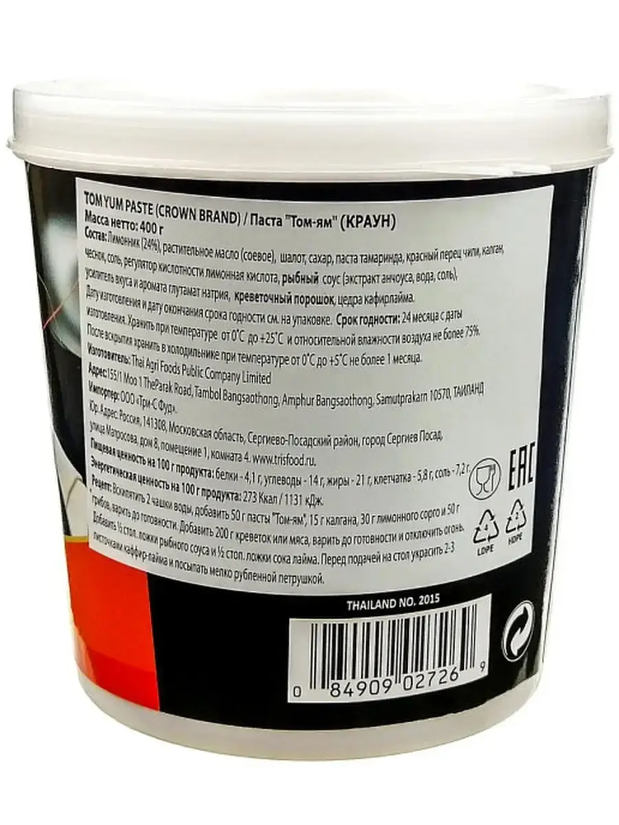 Паста карри красная. Вкусный и готовый полуфабрикат для приготовления знаменитого супа Том Ям для придания ему характерного остро-кисло-цитрусового вкуса. Необходимо только добавить кокосовое молоко, воду или бульон, мясо и морепродукты.Паста хорошей консистенции и обладает очень пряным, ярким аутентичным ароматом.Состав:Лимонник 24%, соевое масло, шалот, сахар, паста тамаринда, красный перец чили, калган, чеснок, соль, регулятор кислотности: лимонная кислота, РЫБНЫЙ СОУС из экстракта анчоуса и воды с солью, усилитель вкуса: глутамат натрия, КРЕВЕТОЧНЫЙ порошок, цедра кафирлайма.