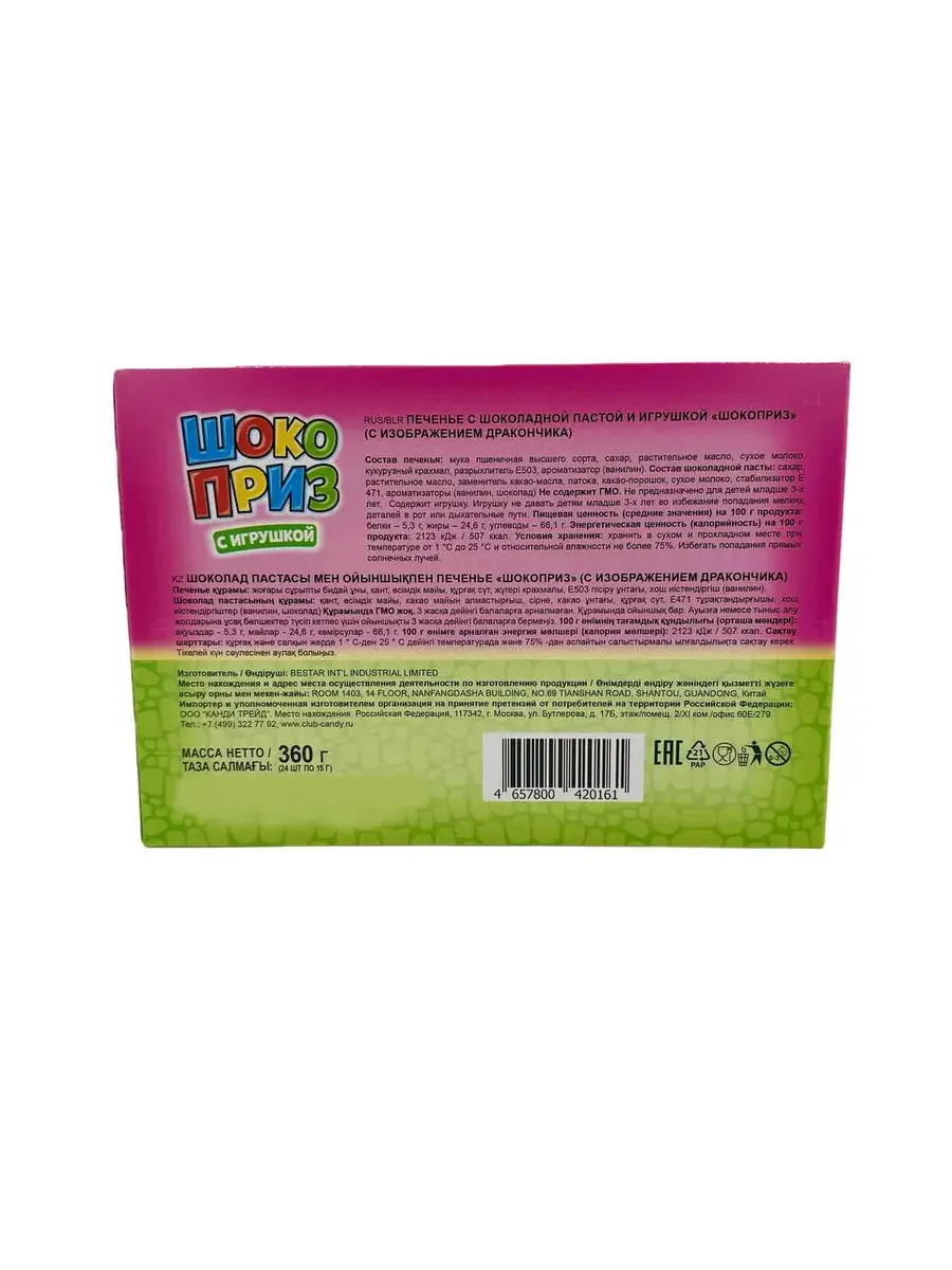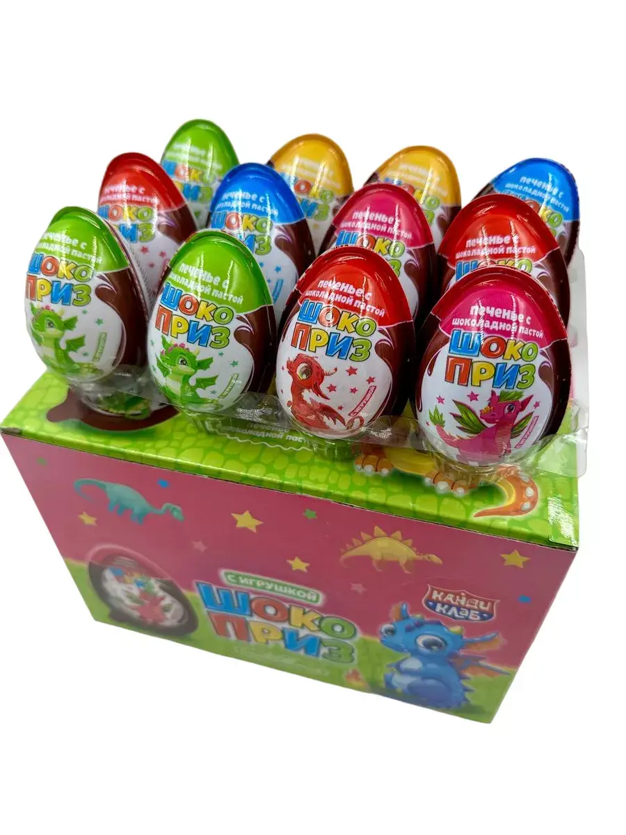 Добро пожаловать в мир Шокоприза от Кенди Клаб! Если вы ищете идеальный десерт для детей, то вы нашли его! Яйцо Шокоприз - это не только невероятно вкусное печенье с шоколадной пастой, но и забавные игрушки внутри каждого яйца!