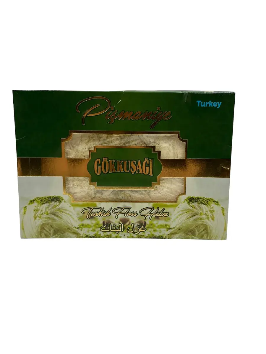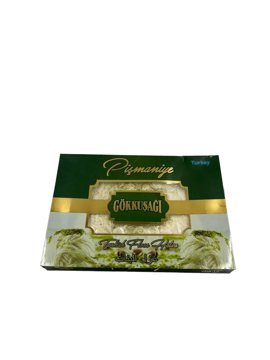 Пишмание -одна из самых знаменитых турецких сладостей, наряду с лукумом, пахлавой. Аналог такого лакомства -сахарная вата. Она известна во всем мире. Тонкая сладкая лапша буквально тает во рту и чем-то похожа на всем известную халву. Пишмание упакована в картонную коробку ( такую упаковку можно подарить близким , коллегам, друзьям).Этот десерт отличается необычным вкусом и сладостью. По своей воздушной консистенции пишмание напоминает любимую с детства сладкую вату. Однако в отличие от обычной сладкой ваты, пишмание делают из муки и сахара, формируя из ингредиентов тончайшие воздушные нити. Затем в продукт добавляют фисташки, которые придают ореховый вкус и аромат. Хлопковая халва является визитной карточкой Турции. Этот десерт мгновенно тает во рту, за что особо любим детьми. Данная халва разделена на небольшие порции для удобства.