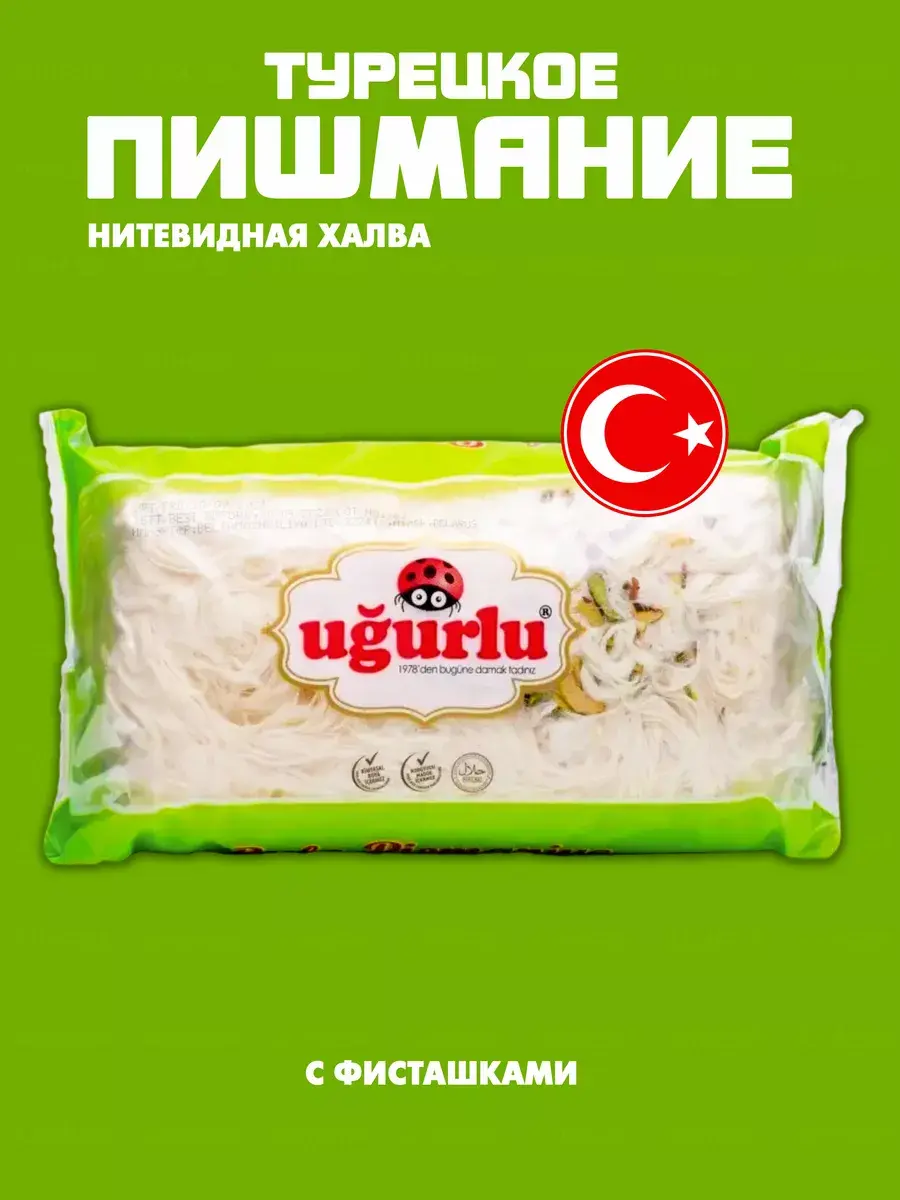 Легкий воздушный вкус настоящего Турецкого пишмание, премиум класса Ugurlu с фисташками унесет вас на вершину блаженства. Как называется Турецкая халва воздушная, халва волокнами, сладкая вата, халва хлопковая, халва ниточками и на много подобные вопросы ответ одинаковый, это все пишмание.