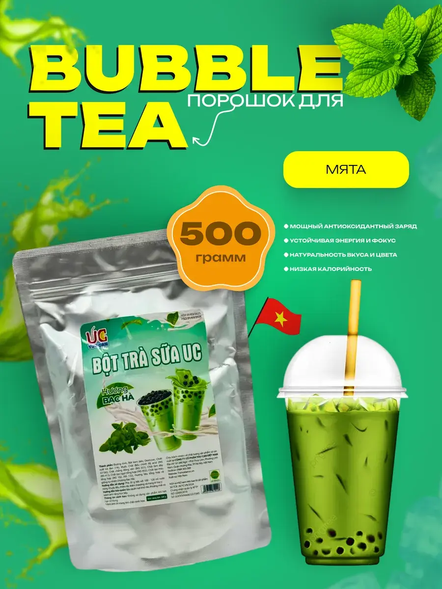 Порошок для Bubble Tea с мятным вкусом – свежесть в каждом глотке