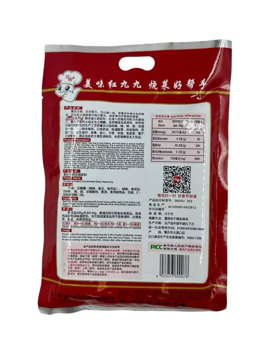 Говяжий жир, бобовая паста Доубань, чили перец, растительное масло, чеснок,