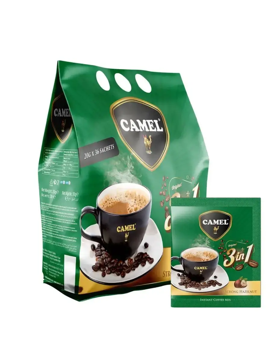 Приобретите турецкий растворимый кофе Camel 3 в 1 c лесным орехом уже сегодня и наслаждайтесь превосходным вкусом настоящего кофе и ароматным лесным орехом в удобной упаковке, которую можно взять с собой куда угодно!