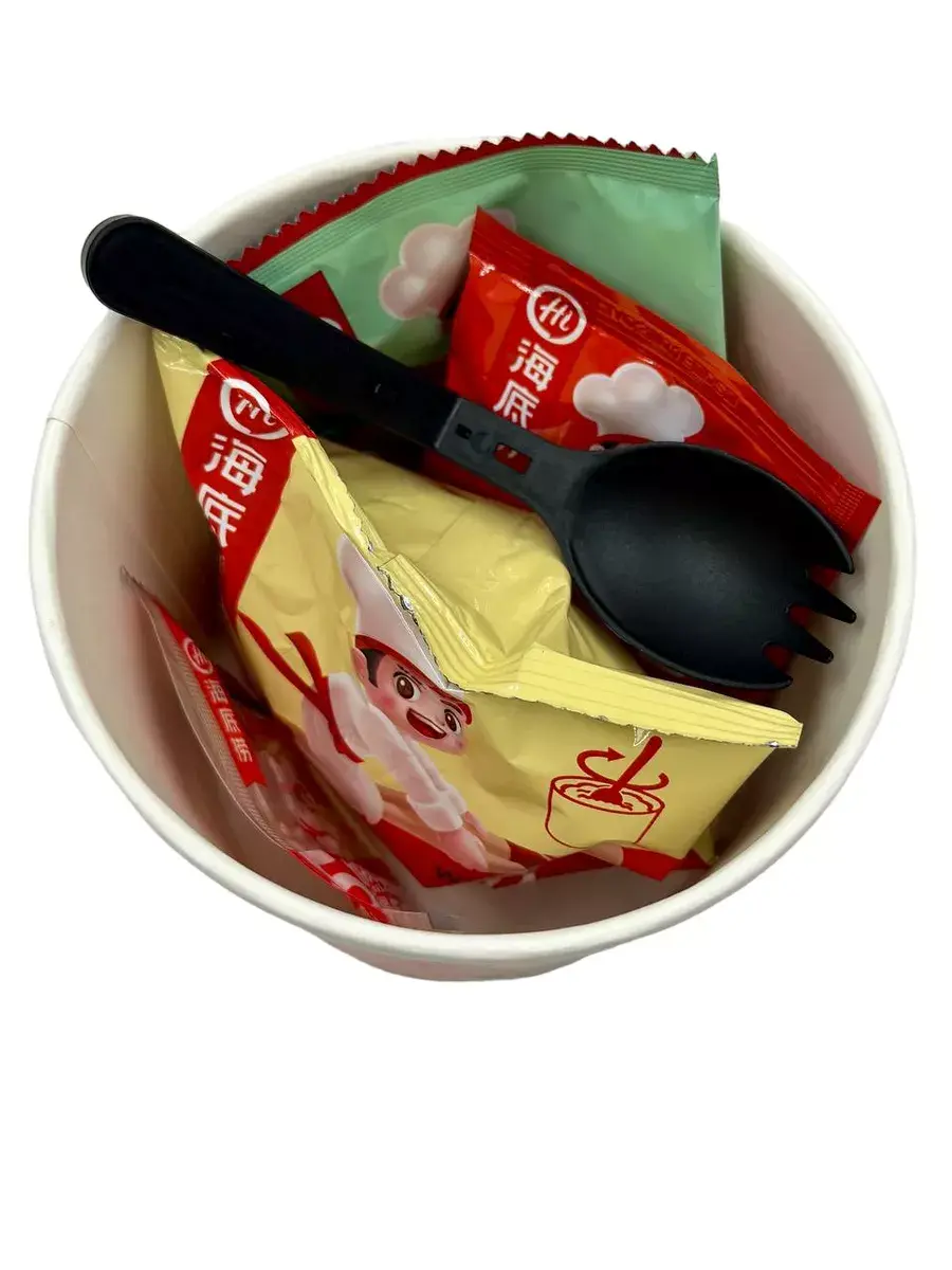 Haidilao Рис быстрого приготовления - популярное азиатское блюдо, традиционно считающееся одним из основных в корейской кухне, завоевавшее сердца людей не только в Корее, Китае, Сингапуре и других странах Азии, но и по всему миру. Состоит из отварного риса с добавками из овощей, , мяса или морепродуктов, приправленных соусами на основе чили или других видов перца. Ароматное и сытное блюдо, которое не оставит вас голодным.Способ приготовления:1.Откройте крышку стакана, распакуйте пакетики с рисом и овощами, засыпьте их в стакан.2.Залейте в стакан кипяток, согласно отметке внутри/снаружи стакана.3.Закройте крышку и дайте настояться в течение 8 минут*.4.Откройте крышку и положите содержимое пакетика с начинкой в стакан.5.Хорошо перемешайте и наслаждайтесь горячим обедом.