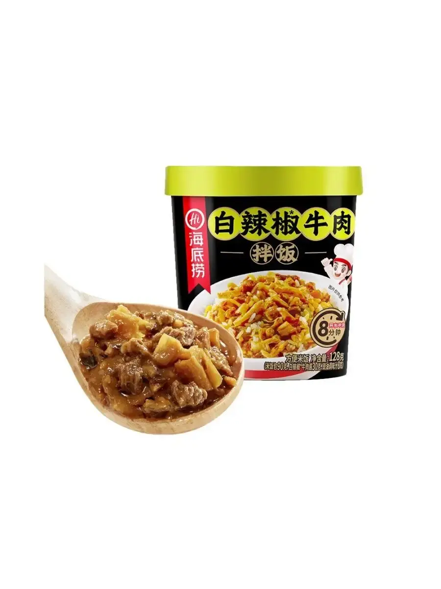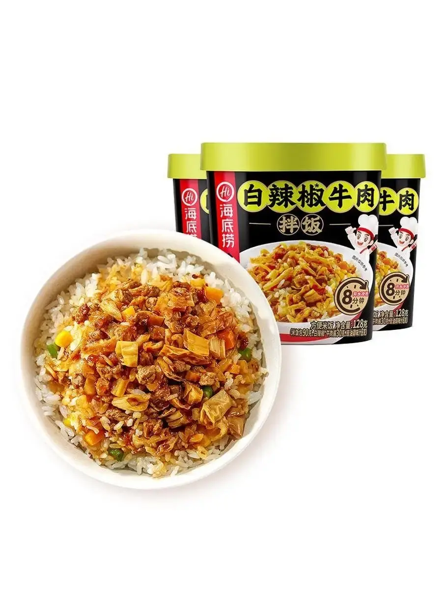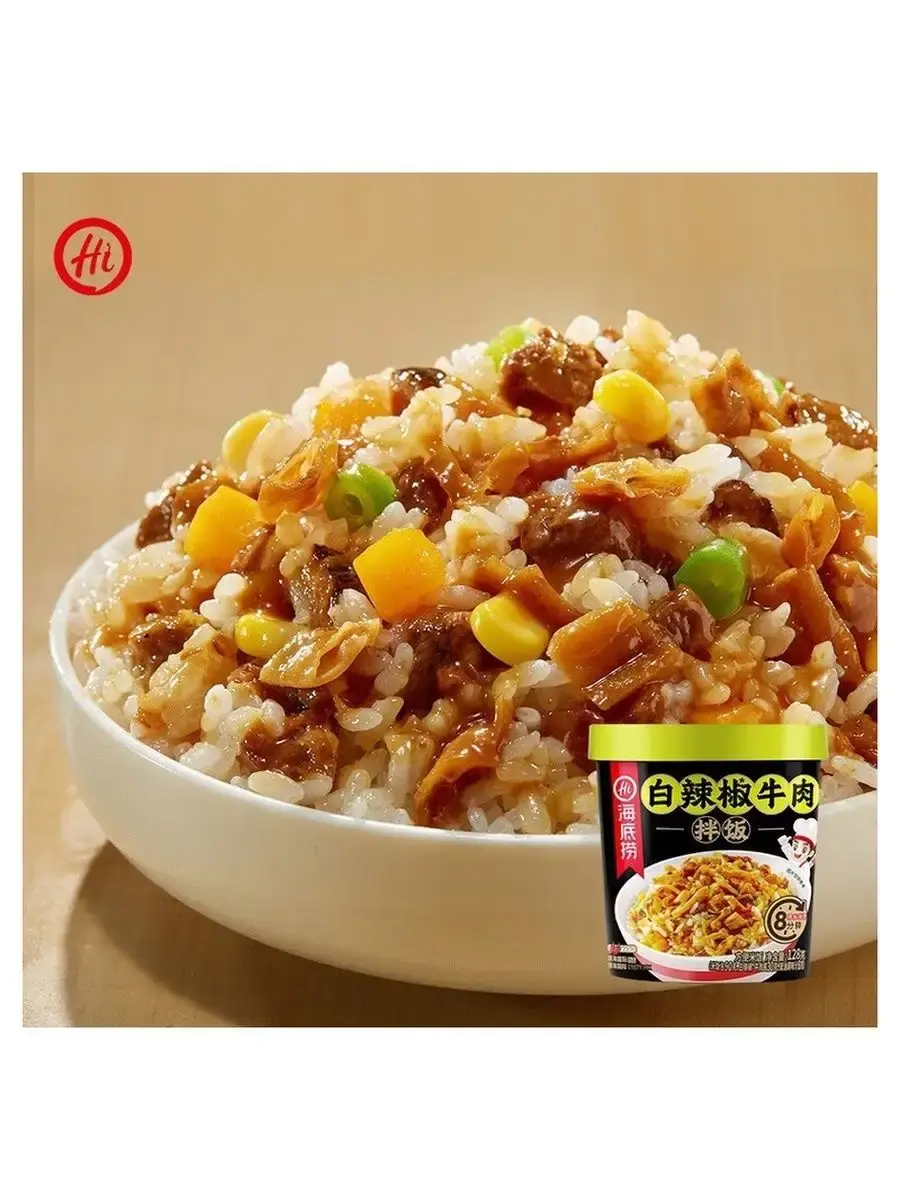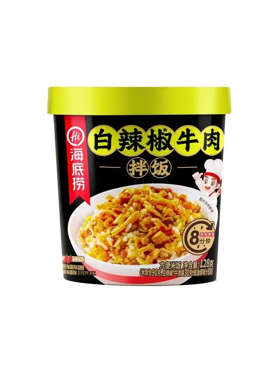 Haidilao Рис быстрого приготовления - популярное азиатское блюдо, традиционно считающееся одним из основных в корейской кухне, завоевавшее сердца людей не только в Корее, Китае, Сингапуре и других странах Азии, но и по всему миру. Состоит из отварного риса с добавками из овощей, , мяса или морепродуктов, приправленных соусами на основе чили или других видов перца. Ароматное и сытное блюдо, которое не оставит вас голодным.Способ приготовления:1.Откройте крышку стакана, распакуйте пакетики с рисом и овощами, засыпьте их в стакан.2.Залейте в стакан кипяток, согласно отметке внутри/снаружи стакана.3.Закройте крышку и дайте настояться в течение 8 минут*.4.Откройте крышку и положите содержимое пакетика с начинкой в стакан.5.Хорошо перемешайте и наслаждайтесь горячим обедом.
