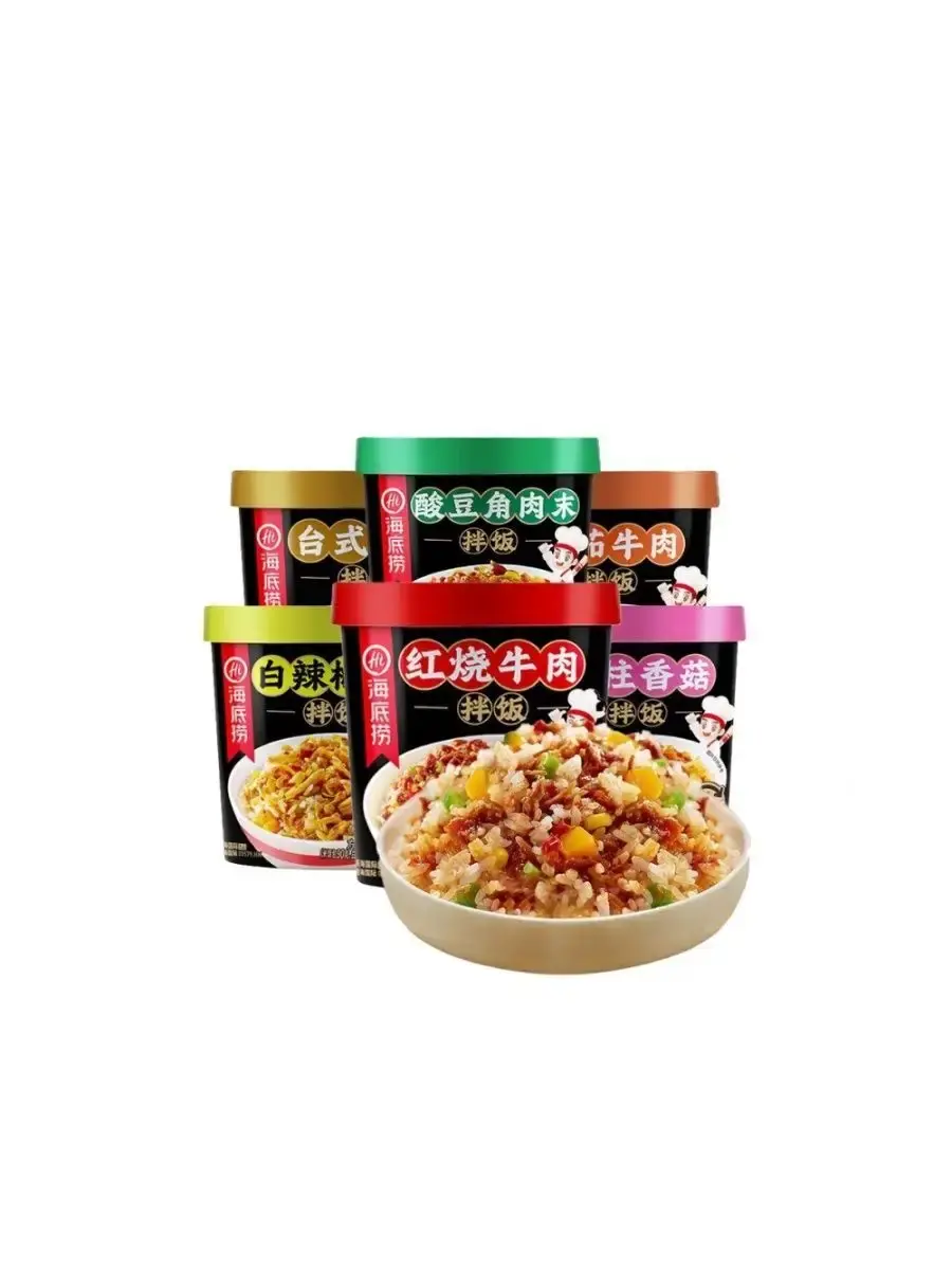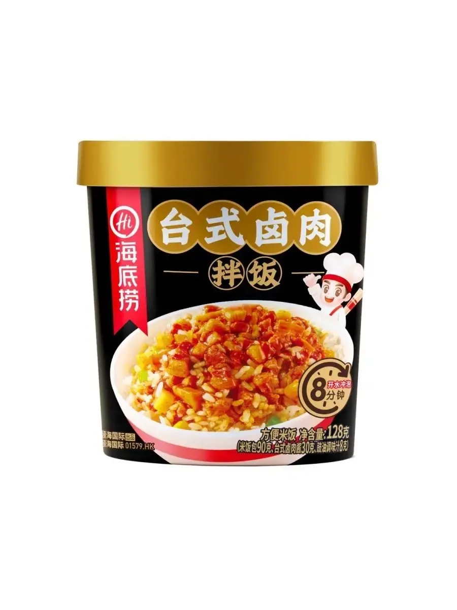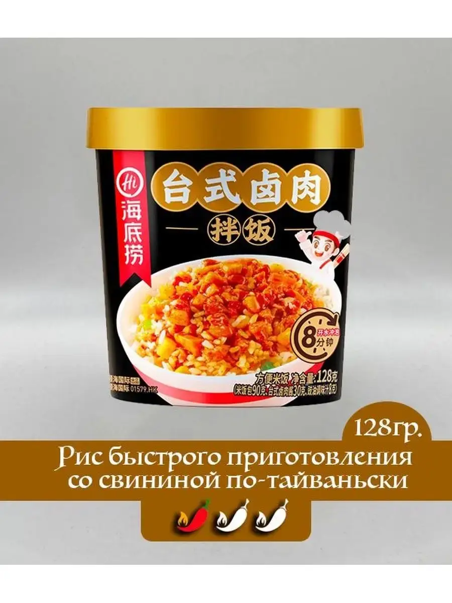 Haidilao Рис быстрого приготовления - популярное азиатское блюдо, традиционно считающееся одним из основных в корейской кухне, завоевавшее сердца людей не только в Корее, Китае, Сингапуре и других странах Азии, но и по всему миру. Состоит из отварного риса с добавками из овощей, , мяса или морепродуктов, приправленных соусами на основе чили или других видов перца. Ароматное и сытное блюдо, которое не оставит вас голодным.Способ приготовления:1.Откройте крышку стакана, распакуйте пакетики с рисом и овощами, засыпьте их в стакан.2.Залейте в стакан кипяток, согласно отметке внутри/снаружи стакана.3.Закройте крышку и дайте настояться в течение 8 минут*.4.Откройте крышку и положите содержимое пакетика с начинкой в стакан.5.Хорошо перемешайте и наслаждайтесь горячим обедом.