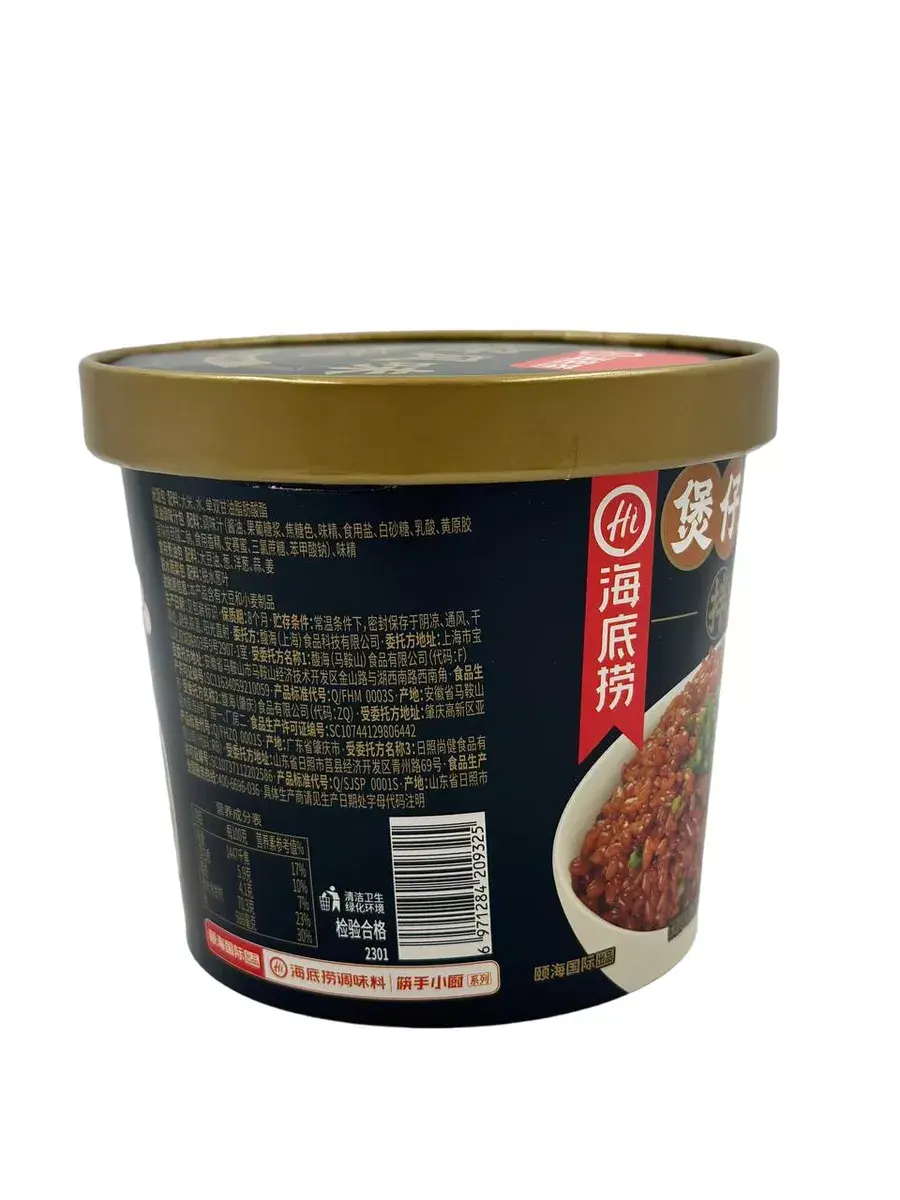 Haidilao Рис быстрого приготовления - популярное азиатское блюдо, традиционно считающееся одним из основных в корейской кухне, завоевавшее сердца людей не только в Корее, Китае, Сингапуре и других странах Азии, но и по всему миру. Состоит из отварного риса с добавками из овощей, , мяса или морепродуктов, приправленных соусами на основе чили или других видов перца. Ароматное и сытное блюдо, которое не оставит вас голодным.Способ приготовления:1.Откройте крышку стакана, распакуйте пакетики с рисом и овощами, засыпьте их в стакан.2.Залейте в стакан кипяток, согласно отметке внутри/снаружи стакана.3.Закройте крышку и дайте настояться в течение 8 минут*.4.Откройте крышку и положите содержимое пакетика с начинкой в стакан.5.Хорошо перемешайте и наслаждайтесь горячим обедом.