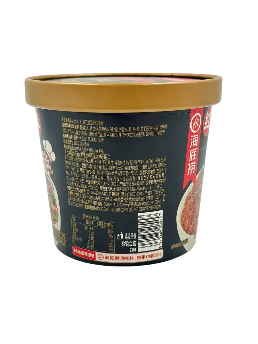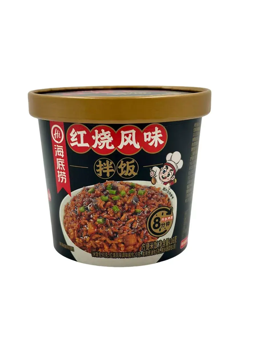 Haidilao Рис быстрого приготовления - популярное азиатское блюдо, традиционно считающееся одним из основных в корейской кухне, завоевавшее сердца людей не только в Корее, Китае, Сингапуре и других странах Азии, но и по всему миру. Состоит из отварного риса с добавками из овощей, , мяса или морепродуктов, приправленных соусами на основе чили или других видов перца. Ароматное и сытное блюдо, которое не оставит вас голодным.Способ приготовления:1.Откройте крышку стакана, распакуйте пакетики с рисом и овощами, засыпьте их в стакан.2.Залейте в стакан кипяток, согласно отметке внутри/снаружи стакана.3.Закройте крышку и дайте настояться в течение 8 минут*.4.Откройте крышку и положите содержимое пакетика с начинкой в стакан.5.Хорошо перемешайте и наслаждайтесь горячим обедом.