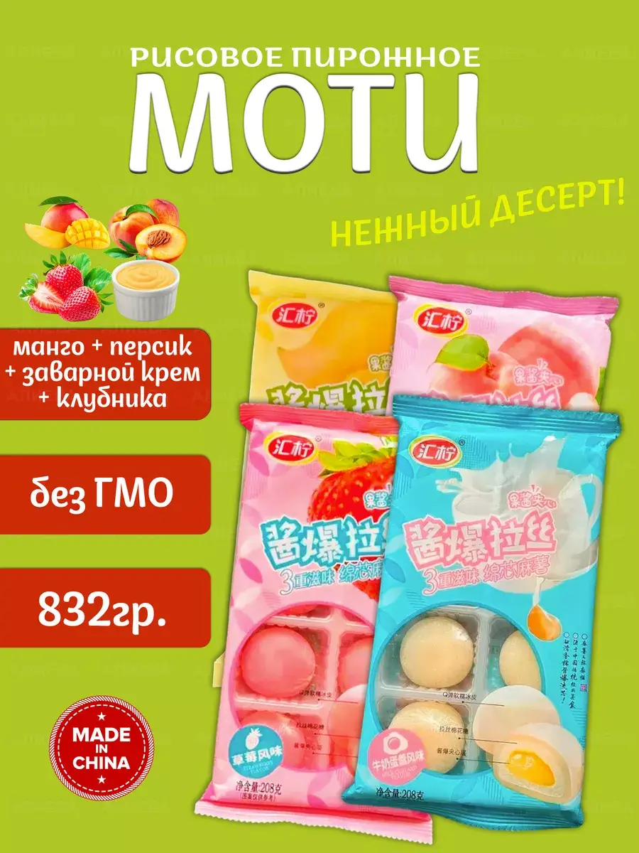 Недорогой и простой способ совершить гастрономическое путешествие в азии, не выходя из дома.Моти - нежный рисовый десерт на основе риса с соком винограда и со вкусом ароматного винограда с чернилами черной каракатицы.Моти - традиционные сладости в Японии, Китае и Корее.Они изготавливаются особым образом и подаются к чайной церемонии.Моти делается из истолчённого в пасту клейкого риса, особого известного с давнего времени сорта мотигомэ, который при долгом толчении и смачивании приобретает сладкий вкус.Не содержат усилителей вкуса, поэтому не имеют ярко выраженного аромата и вкуса, т.е. имеют легкий вкус и нежный аромат.Понравятся тем, кто не любит сильно сладкие десерты.Подойдет в качестве подарка любителям аниме.