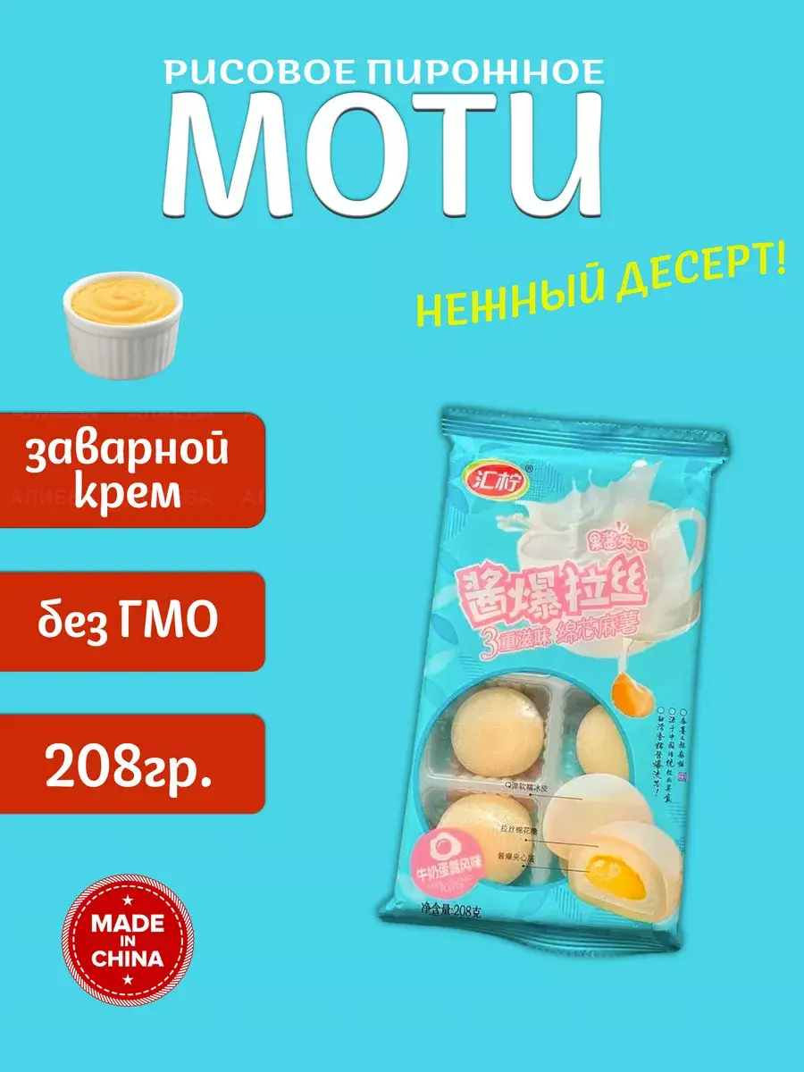 едорогой и простой способ совершить гастрономическое путешествие в азии, не выходя из дома.Моти - нежный рисовый десерт на основе риса с соком винограда и со вкусом ароматного винограда с чернилами черной каракатицы.Моти - традиционные сладости в Японии, Китае и Корее.Они изготавливаются особым образом и подаются к чайной церемонии.Моти делается из истолчённого в пасту клейкого риса, особого известного с давнего времени сорта мотигомэ, который при долгом толчении и смачивании приобретает сладкий вкус.Не содержат усилителей вкуса, поэтому не имеют ярко выраженного аромата и вкуса, т.е. имеют легкий вкус и нежный аромат.Понравятся тем, кто не любит сильно сладкие десерты.Подойдет в качестве подарка любителям аниме.