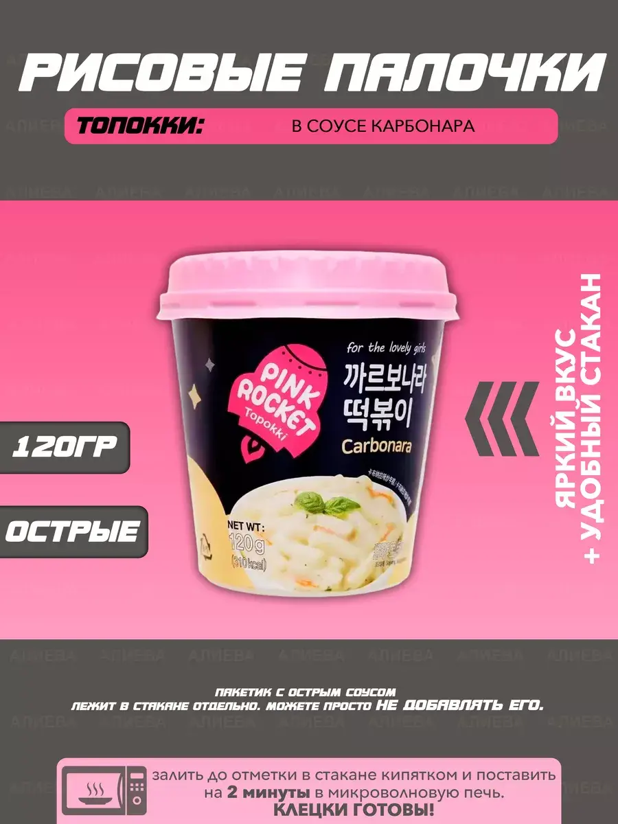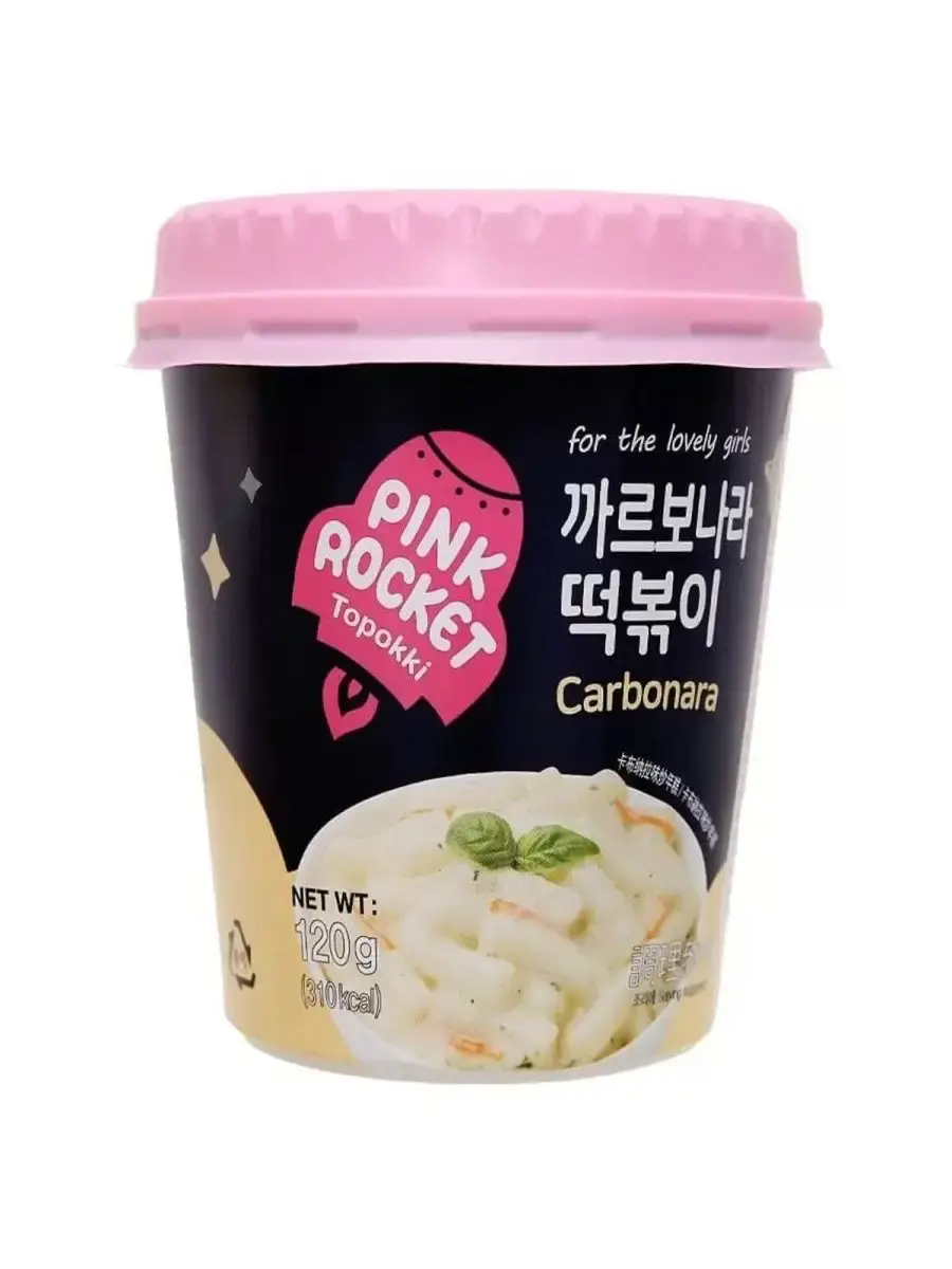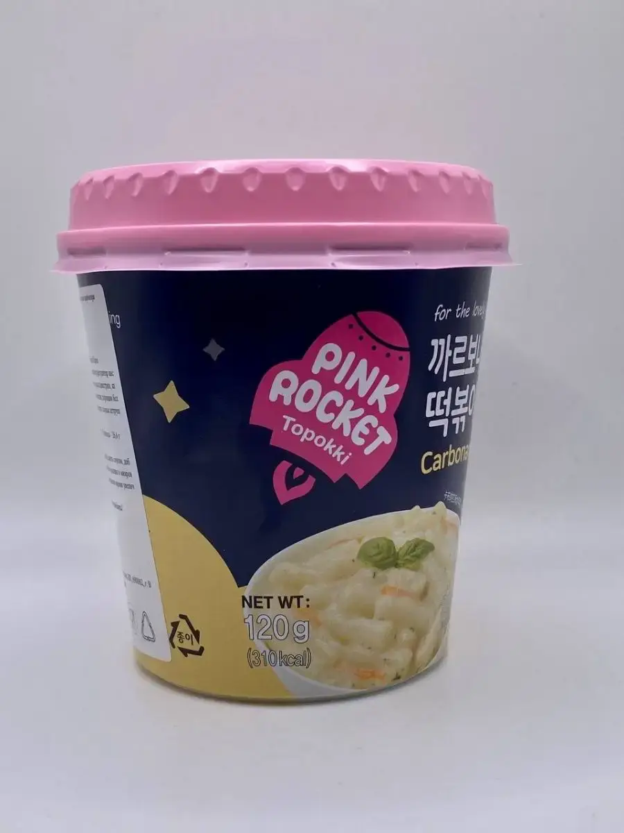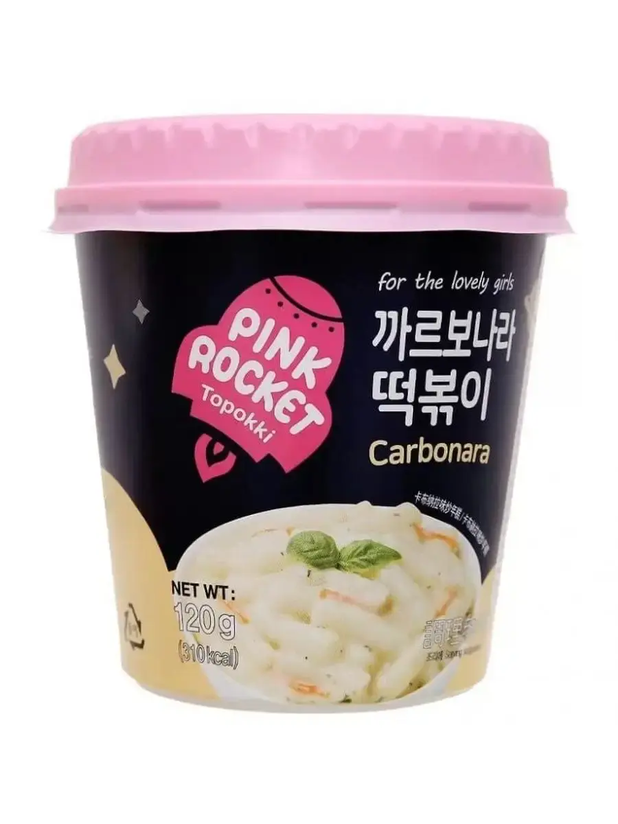 Рисовые клецки в соусе карбонара, Toppoki Carbonaro souce Pink Rocket – это необычное блюдо с нежным вкусом. Они подойдут тем, кто хочет сэкономить время на готовке и порадовать себя чем-то более оригинальным, чем простая лапша. Порции идеально хватает, чтобы насытиться без ощущения тяжести в животе. Toppoki Carbonaro souce Pink Rocket - это новый вид токпокки. Сливочный соус карбонара отлично сочетается с рисовыми клёцкамиТопокки Pink Rocket Original- рисовые брусочки (колбаски, палочки, лепешки), приготовленные в специальном соусе. Токпокки являются еще одним популярным блюдом традиционной корейской кухни, помимо лапши рамен. Топокки Pink Rocket Original - это прекрасная возможность без лишних хлопот приготовить оригинальное корейское блюдо за считанные минуты. Пикантный оригинальный соус прекрасно сочетается с лепешками, отлично насыщает и наполняет энергией.