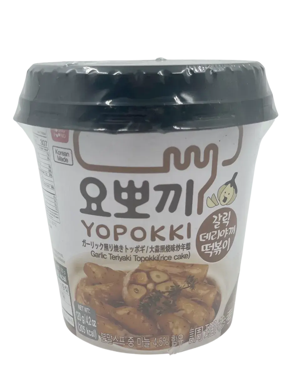 Рисовые клёцки ттокпокки с соусом терияки и чесноком Yopokki понравятся тем, кто любит классические вкусы японской кухни. За ароматные ноты здесь отвечают смесь перцев, гвоздика и мускатный орех, а за приятную остроту - чеснок и лук.