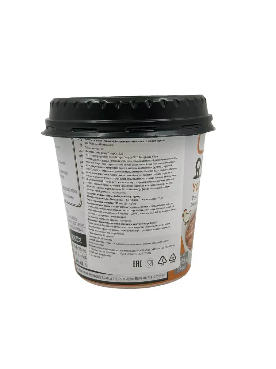 Топпоки - это рисовые клецки, приправленные ароматной пастой из красного перца, луком и чесноком. Они обжариваются с курицей и овощами, что придает им неповторимый вкус и текстуру. В процессе приготовления используется натуральное растительное масло, которое обеспечивает клецкам золотистую корочку. Эти рисовые клецки - отличный выбор для тех, кто любит корейскую кухню и хочет разнообразить свой рацион. Они идеально подходят для обеда или ужина и станут отличным дополнением к любому столу. Благодаря удобной упаковке, их можно взять с собой на работу или в дорогу, чтобы насладиться этим вкусным и ароматным блюдом в любое время.