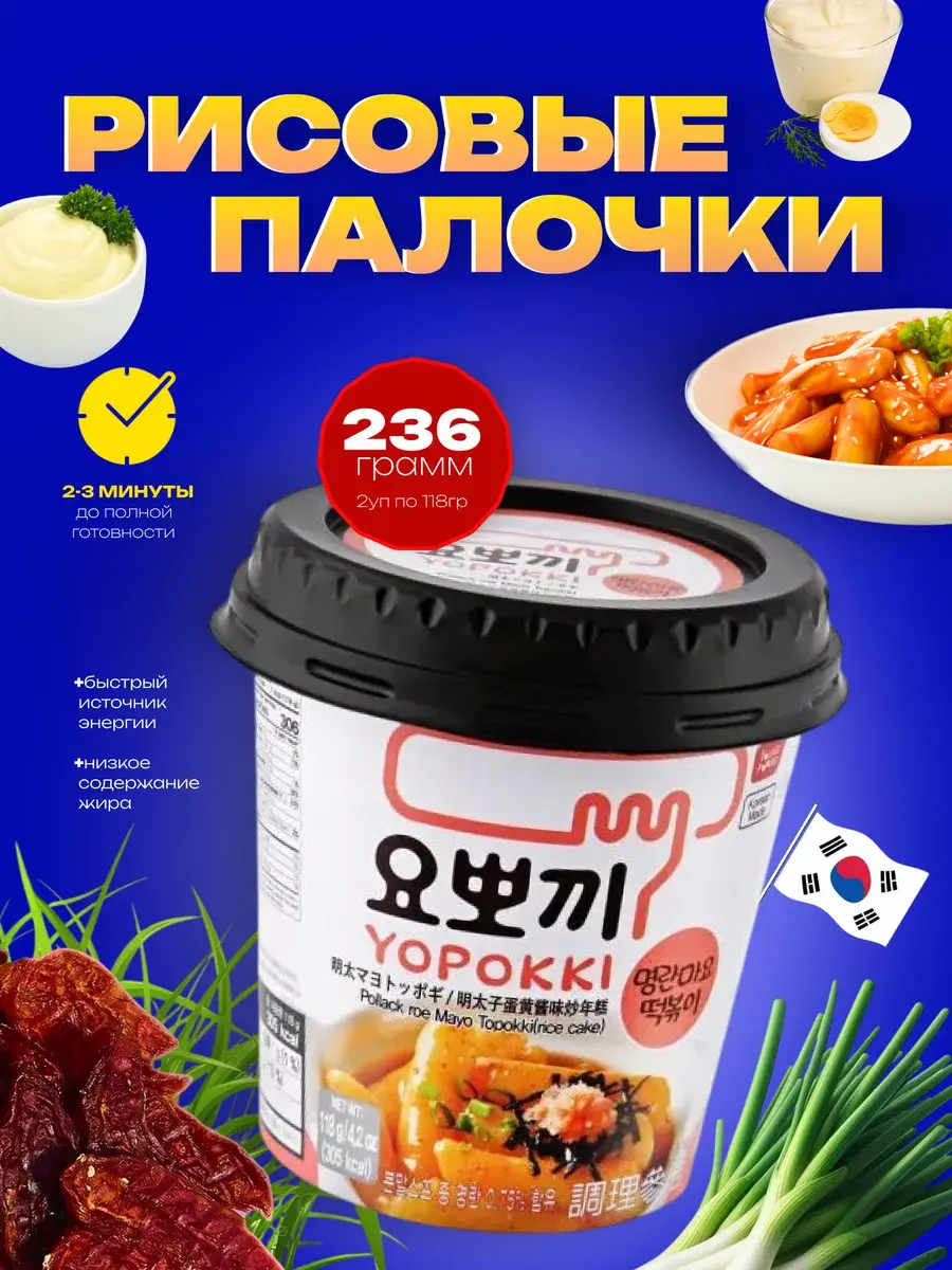 Ттокпокки – идеальный обед или ужин в корейском стиле, когда не хочется тратить драгоценное время на то, чтобы стоять у плиты. Нежная и плотная текстура рисовых брусочков тток нравится и взрослым, и детям, а ароматная подлива, пропитывающая клецки, дарит необыкновенные вкусовые ощущения. Рисовые клёцки ттокпокки с икрой минтая и майонезом Yopokki имеют приятный сливочный вкус с терпкой нотой икры – это пикантное и очень вкусноеблюдо.