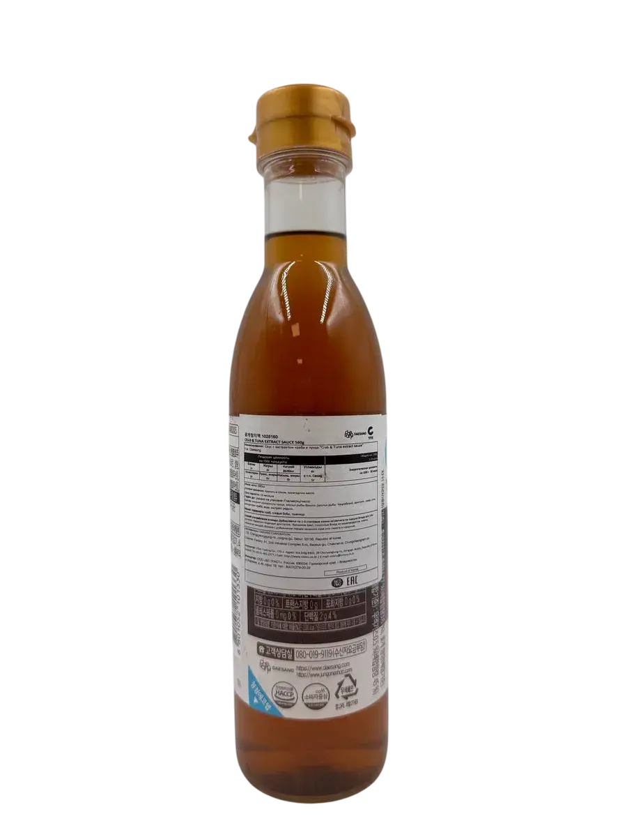 Соус с более богатой рецептурой, нежели классический рыбный соус. Отличный выбор для приготовления кимчи, а также блюд из рыбы и морепродуктов. Он обогащает вкус блюд, придает им более аппетитный аромат и умами. Подходит для тушения. Производитель – крупнейший корейский бренд Daesang.