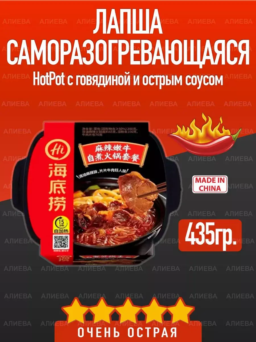 Очень острая лапша с говядиной. Этот вариант Мега-Дошика является явным фаворитом среди наших покупателей -тушеная говядина, набор необычных овощей, грибы и бамбук, что еще нужно?Только не забывайте, что острый соус РЕАЛЬНО острый.Чтобы сделать менее острой -добавьте острый соус не полностью.Способ приготовления:1. Открыть упаковку, достать внутренний контейнер и все ингредиент2. Сложить во внутренний контейнер лапшу, соус и добавки3. Положить на дно контейнера саморазогревающийся элемент, добавить воды в оба контейнеры (во внешний до указанного уровня), вставить внутренний контейнер во внешний4. Через 1-2 минуты вы услышите звуки кипения и увидите струйку горячего пара из крышки, через 5-10 минут лапша будет готова. Перемешайте и наслаждайтесь!
