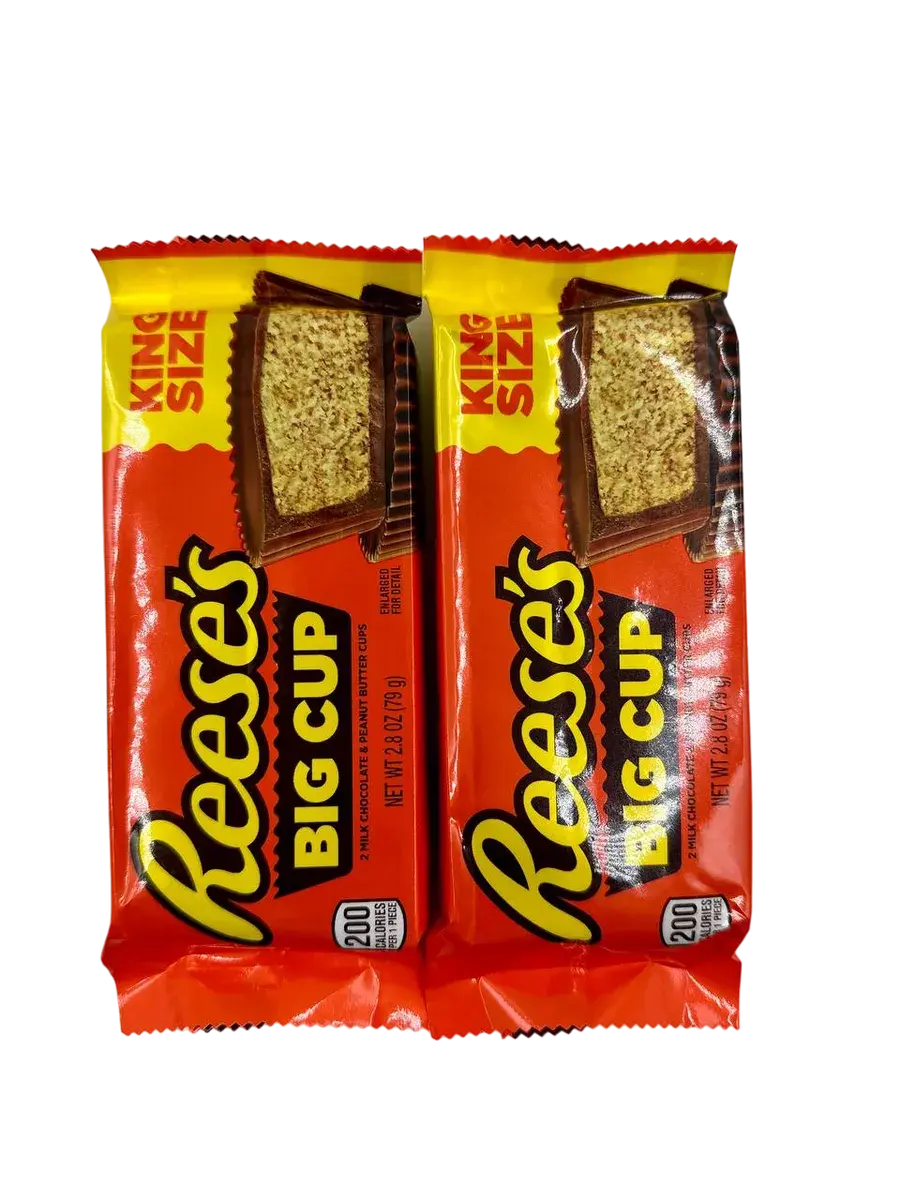 79-граммовая упаковка Reese’s Peanut Butter Big Cups содержит 2 порции шоколадного блаженства, что позволяет наслаждаться этим лакомством всей семьей или делиться с друзьями.