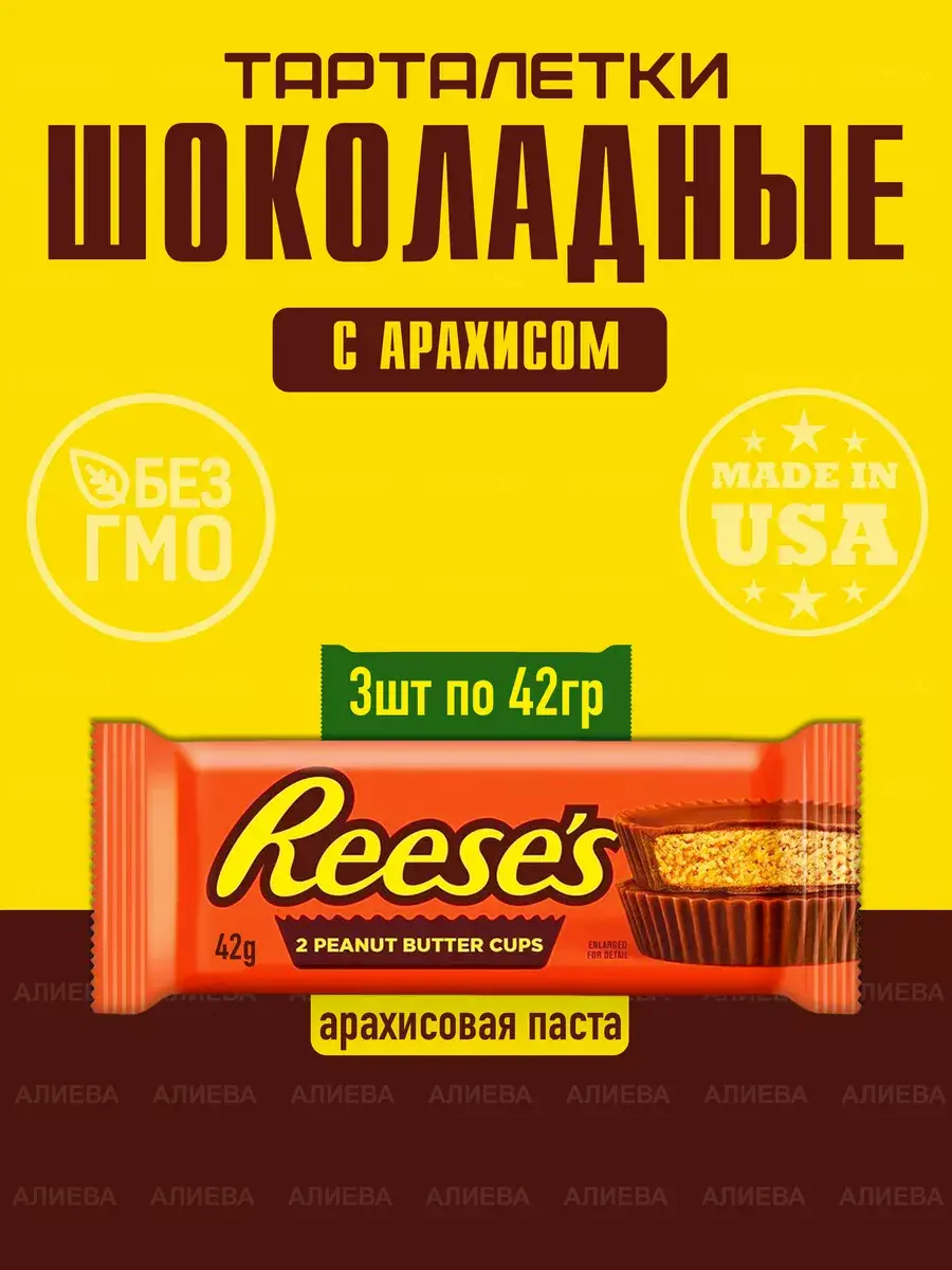 Тарталетки в виде шоколадных кругов Reese's peanut butter cups – уникальный десерт для гурманов и настоящих ценителей. Молочный шоколад, покрывающий арахисовую начинку, переворачивает представления о традиционных вкусах. Едва уловимая пикантная горчинка придает индивидуальность продукту. С другим лакомством его не перепутать. Необычная сладость сводит с ума сладкоежек всего мира. Шоколадные круги облачены в привлекательную упаковку яркого цвета. Она дразнит, манит вас необычным насыщенным содержимым. Возбуждают аппетит, и усиливают слюнотечение. Увидев обертку, хочется скорее вскрыть ее и съесть без остатка. Вкусовое сочетание подходит детям и взрослым. Строгий контроль производства, не позволяющий применение ГМО и вредных добавок, делает Reese's peanut butter cups еще желаннее. Продукт с высоким содержанием полезных веществ приводит в норму низкое давление. Выводит из состояния депрессии, повышая настроение. Ускоряет процессы переваривания, исключая отложение лишних калорий. Наполняет организм энергией и помогает противостоять стрессовым ситуациям.